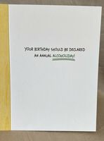 Birthday Greeting Card w/Envelope NEW. Condition is "New". Inside: Your Birthday Should Be Declared An Annual Alcoholiday! NEW Ask about combined shipping on all greeting cards GC1077