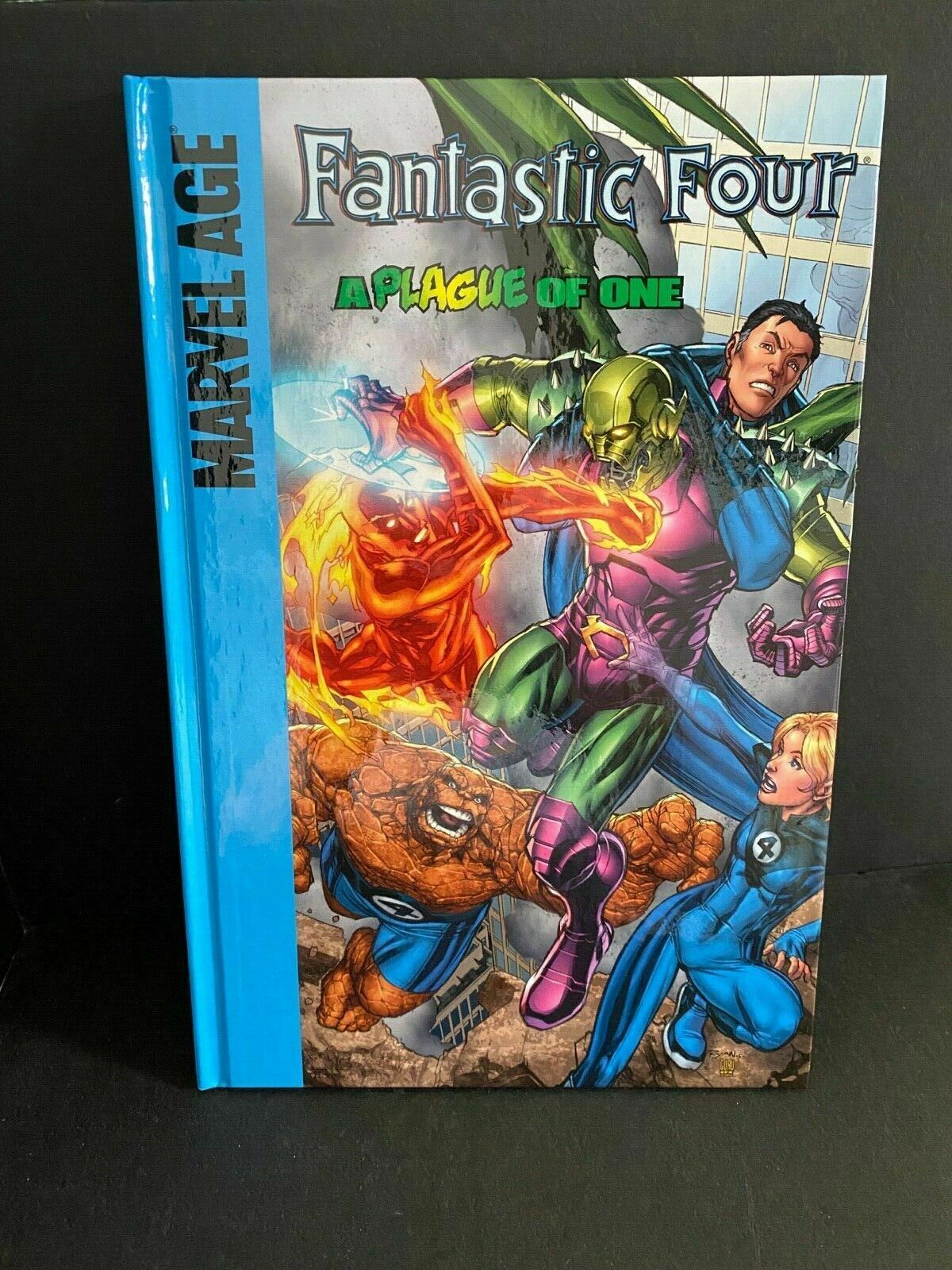 Marvel Age Fantastic Four A Plague of One Graphic Novel NEW The Fantastic Four is the favorite superhero team in New York City! Mr. Fantastic, the Invisible Woman, the Human Torch, and the Thing were irradiated by cosmic rays and given superhuman powers. They joined forces and can always be counted on to save the day. And with supervillains like Dr. Doom and Mole Man around, the city needs all the heroes it can get. Ask about multi book and full set discounts G663