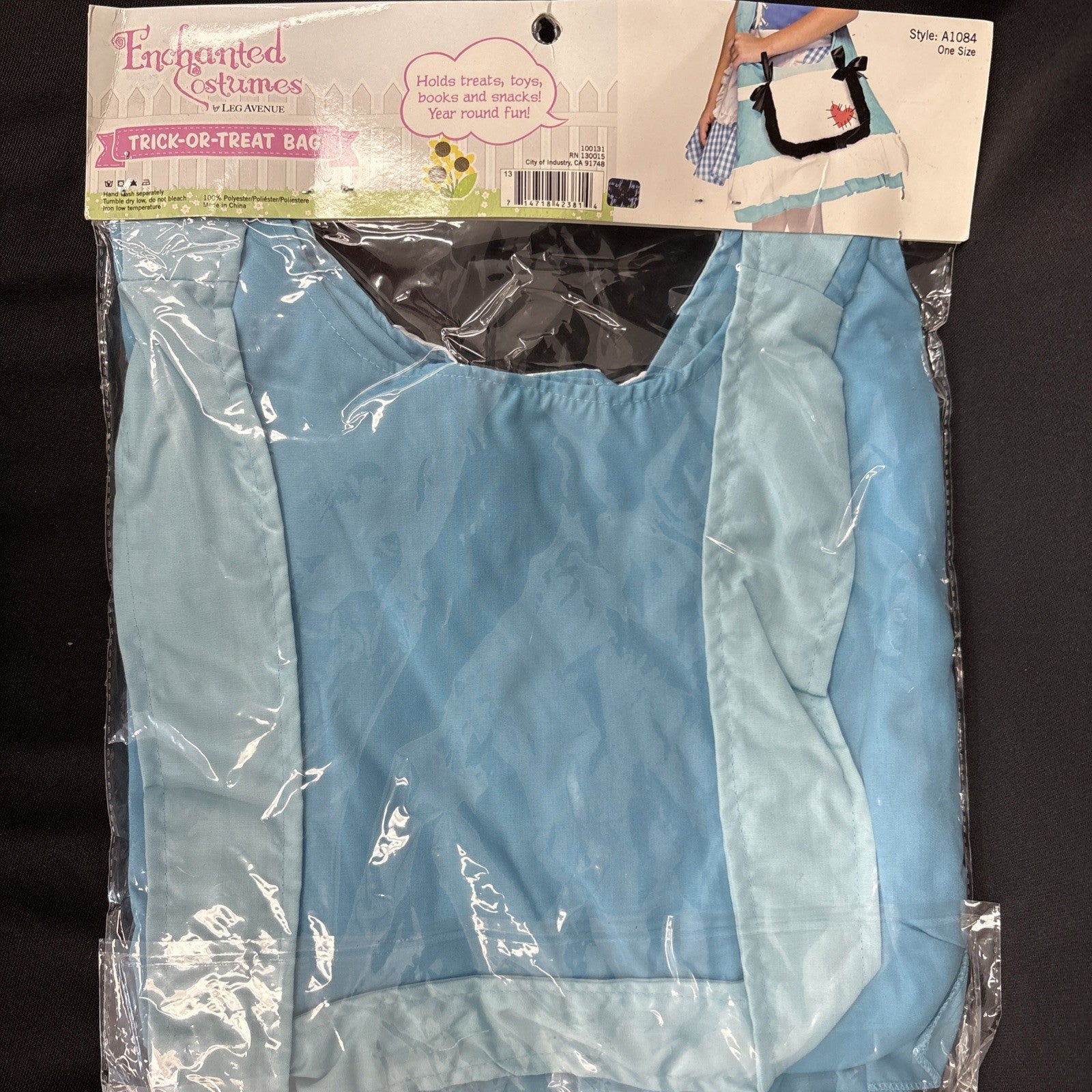 The Alice Trick-or-Treat Bag Costume Accessory by Enchanted Costumes is a fun and whimsical piece perfect for Halloween. Made of durable polyester material in a blue and white color scheme, this one-size bag features a unique and playful design that is sure to stand out at any Halloween party or costume event. Whether paired with a Halloween-themed outfit or simply used for collecting treats, this accessory is sure to add a touch of magic to your Halloween festivities.