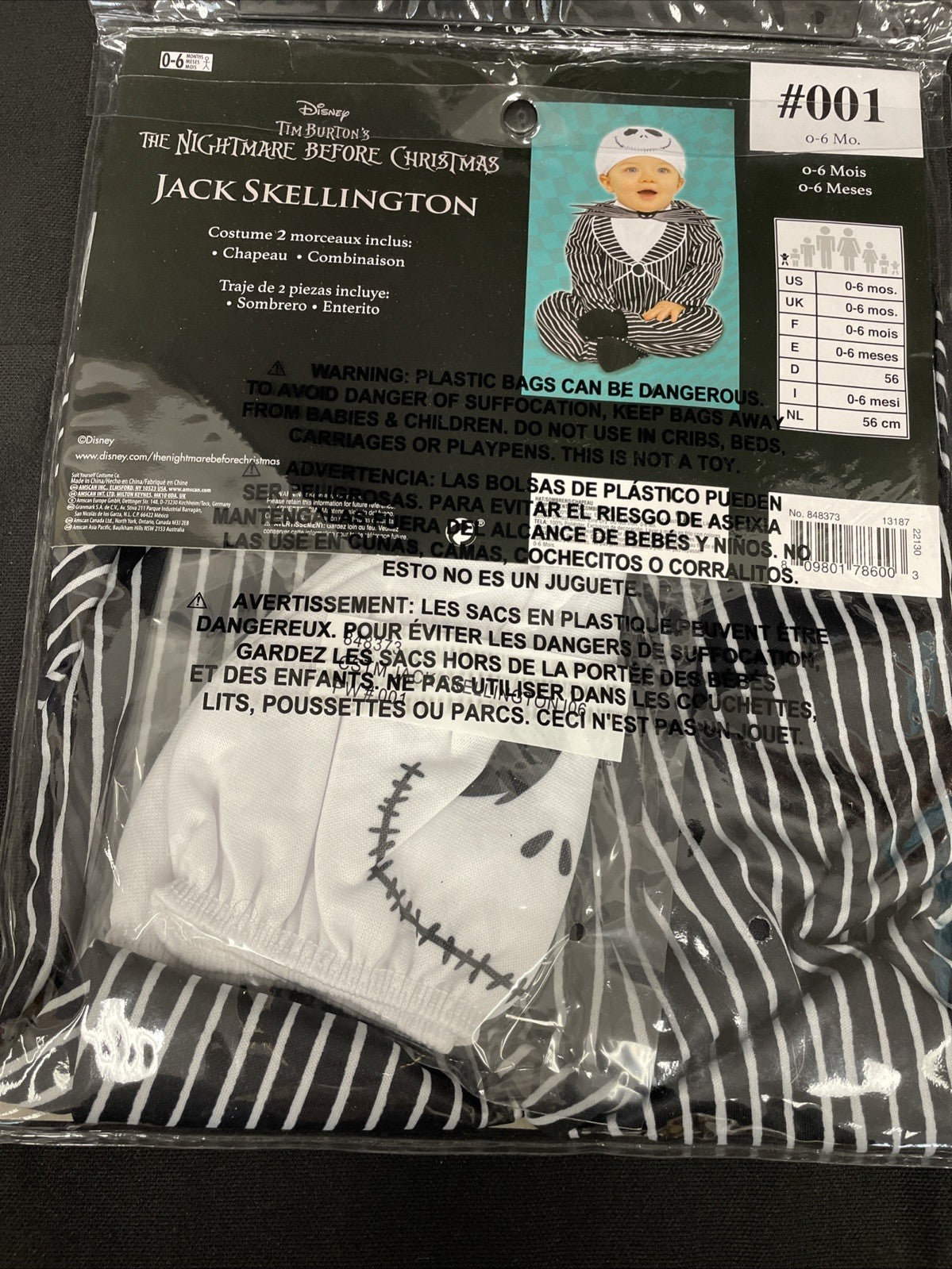Baby Jack Skellington Costume - the Nightmare Before Christmas Size 0-6M