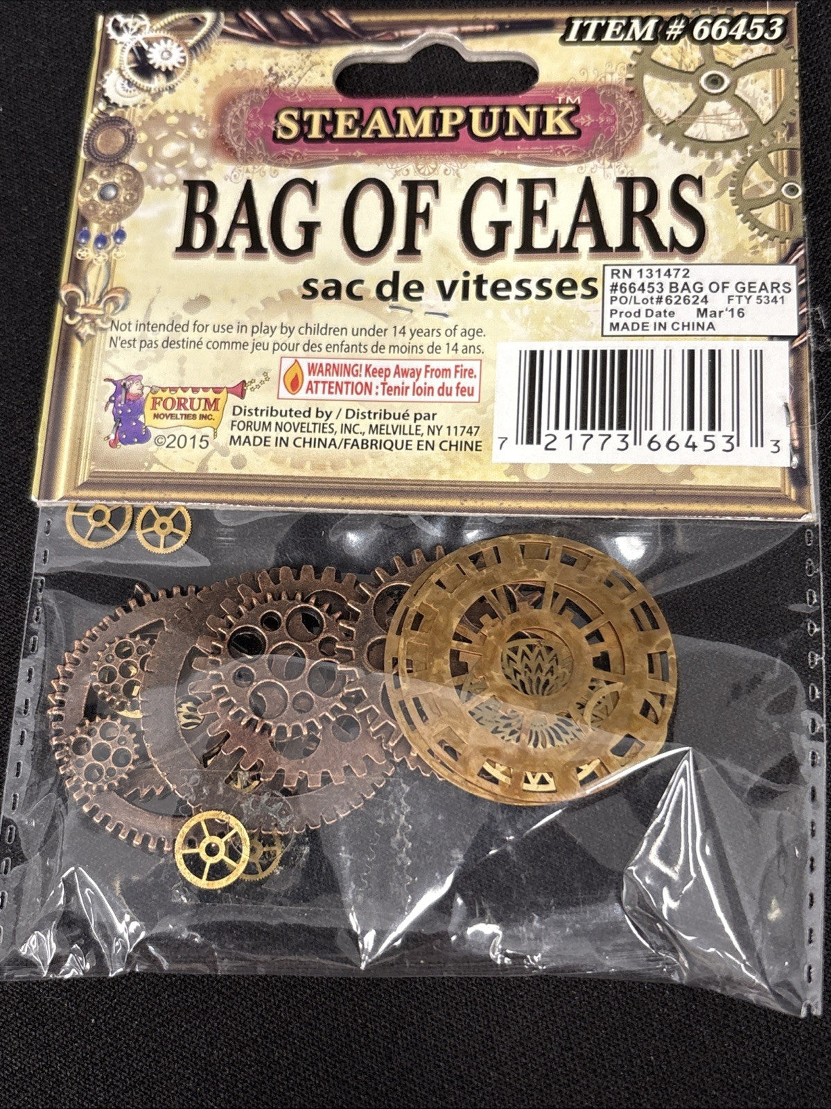 The Bag of Gears Victorian Science Fiction Table Decoration is a unique and charming addition to any home or party setting. Inspired by the Victorian era and steam punk style, this table decoration adds a touch of whimsy and nostalgia to any room. Perfect for those who appreciate intricate detail and historical-inspired design, this item is sure to be a conversation starter and a focal point for any space. Whether used for a party or simply as a decorative piece, this Bag of Gears is sure to delight and entertain.