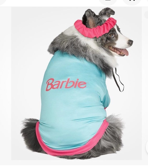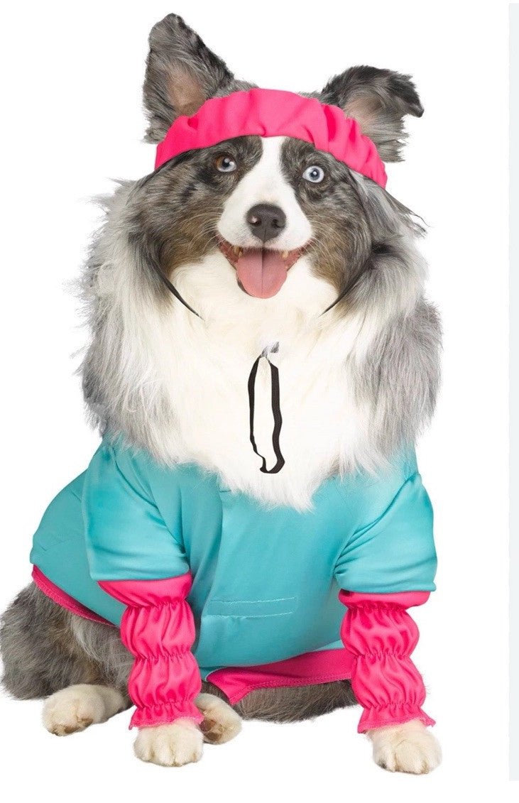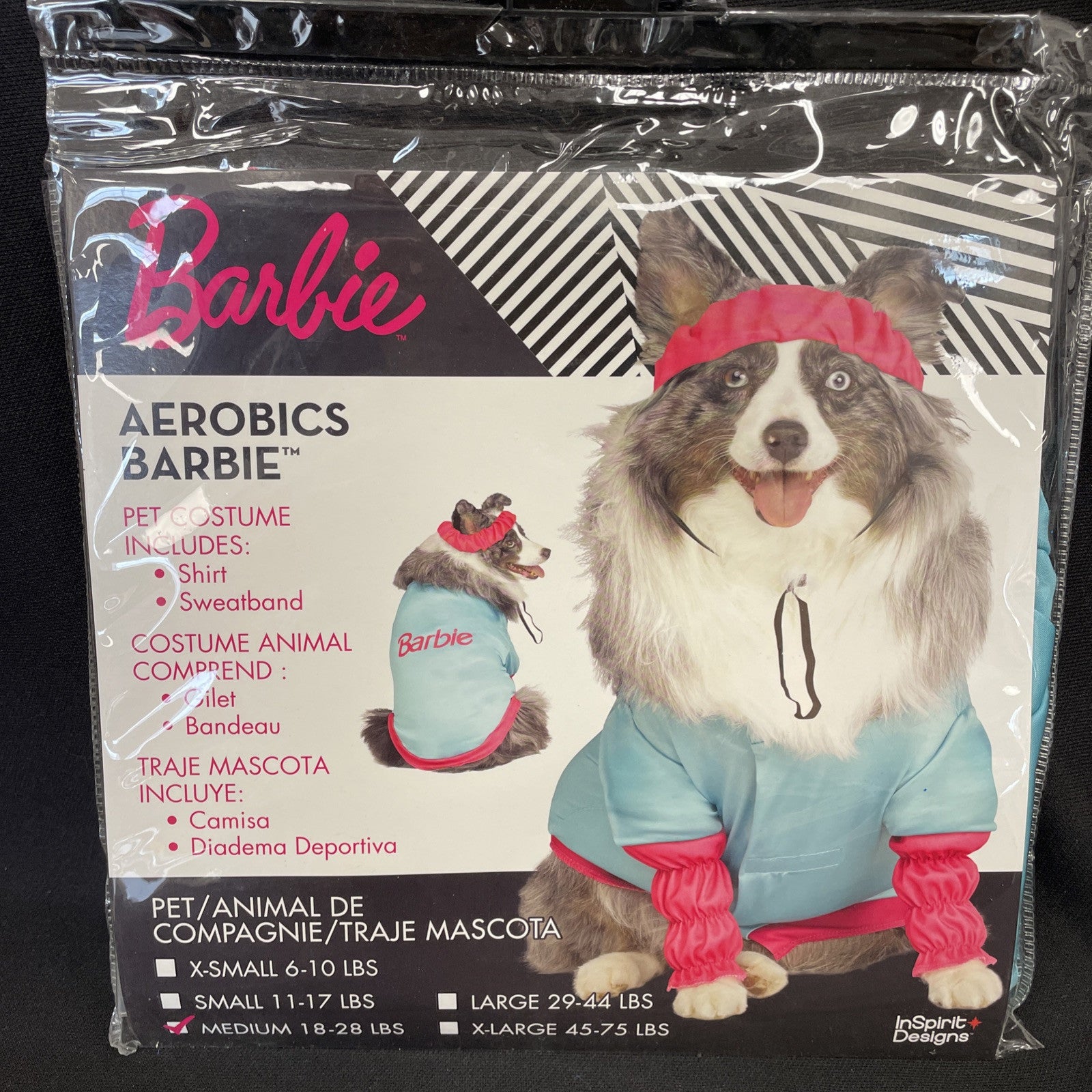 Barbie Doll Aerobics Dog Costume Outfit Shirt Sweatband Size M 18-28 Lbs Stylish