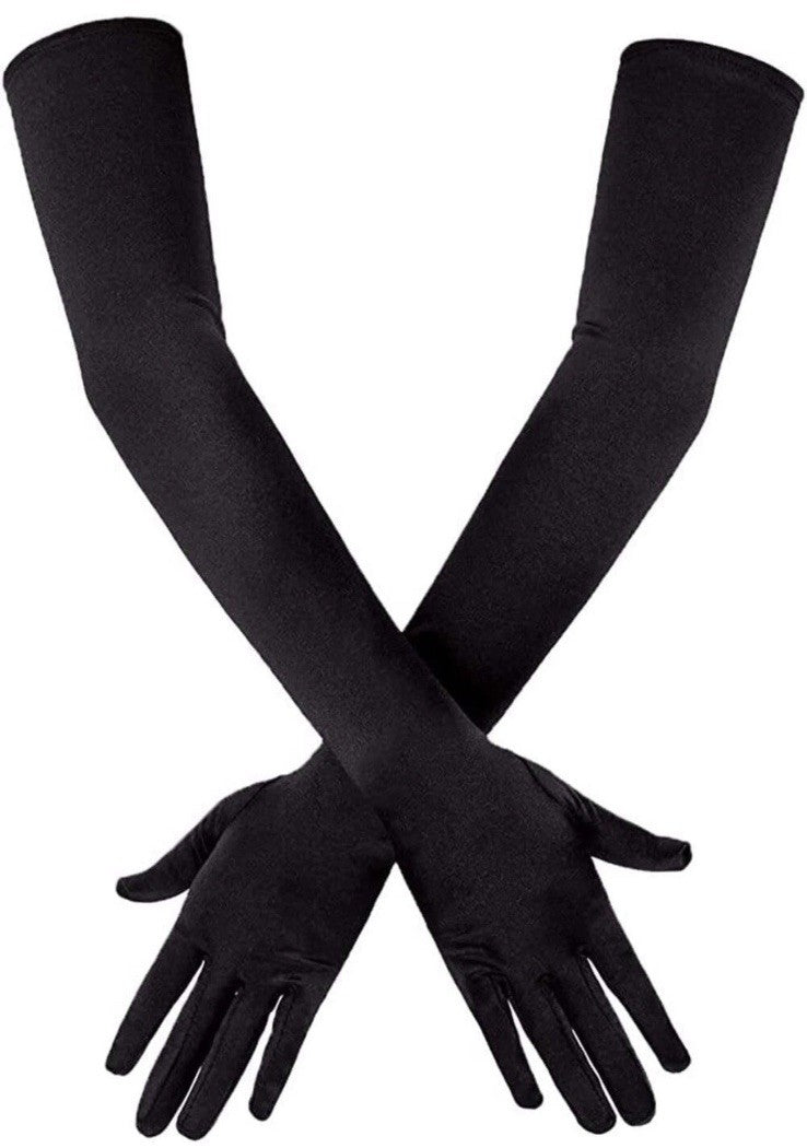Black 20.5" Opera Length 1920's Evening Party Elbow Gloves.