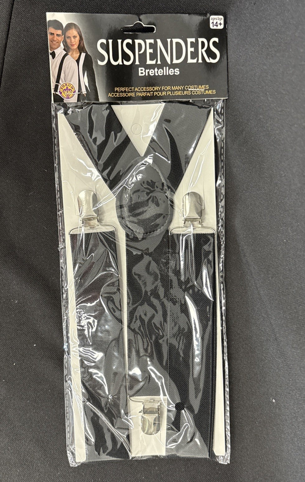 Black Clown Suspenders Elastic Fancy Dress Up Halloween Costume Accessory