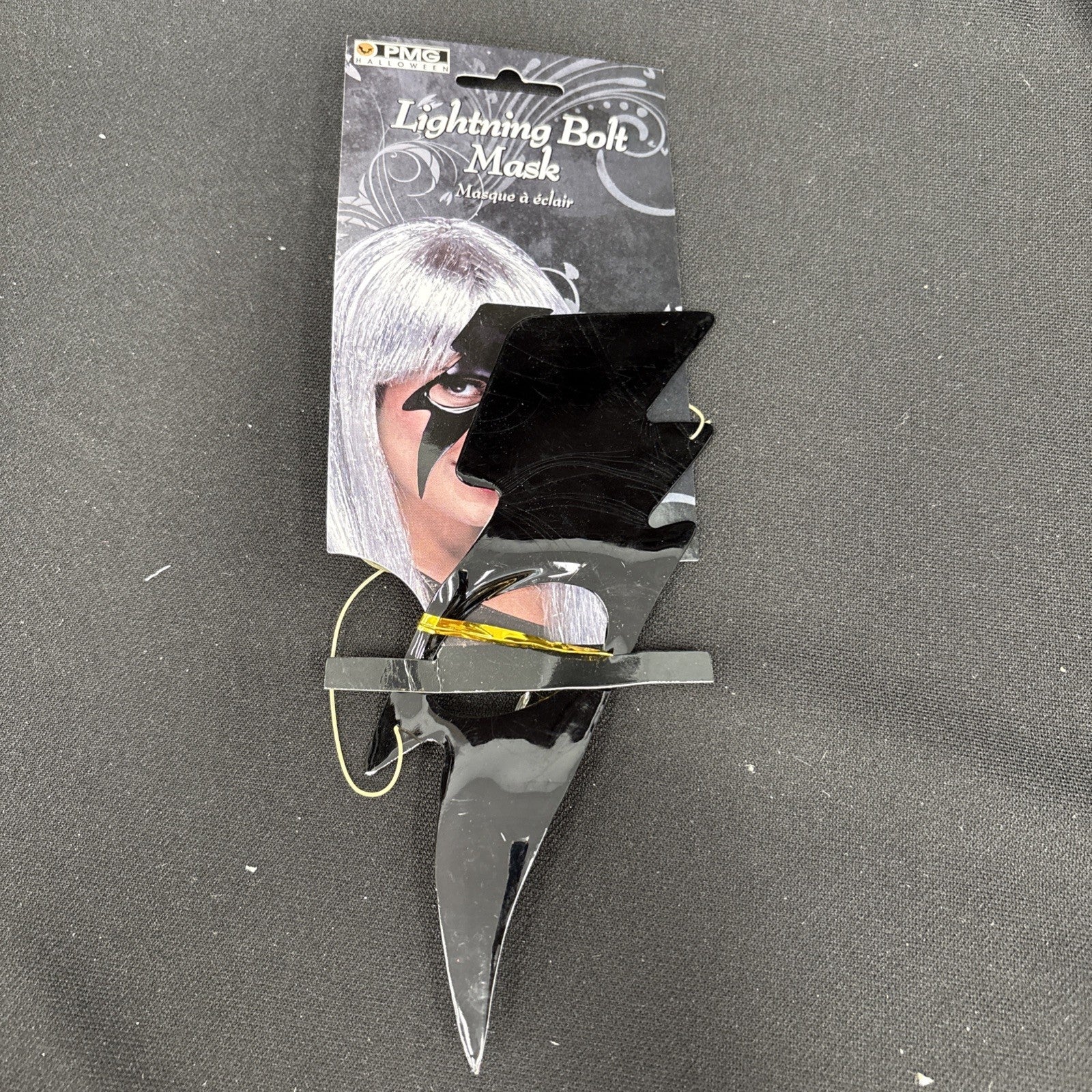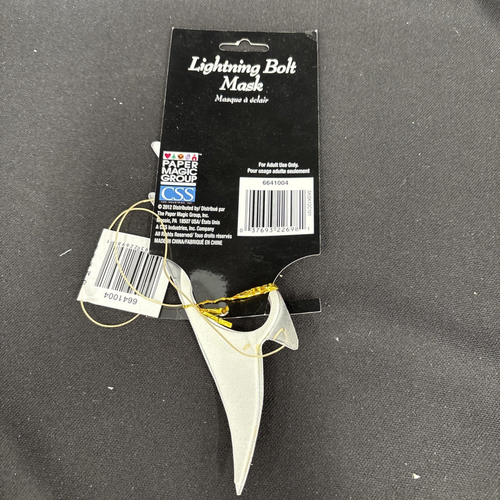 The Black Lightning Bolt Mask in black is a stylish and unique face mask perfect for Halloween or any costume-themed occasion. Made by the brand Paper Magic Group, this plastic mask features a lightning bolt design that adds a touch of edginess to your outfit. With its sleek black color and attention-grabbing style, this mask is sure to make you stand out in any crowd. Perfect for adding a touch of mystery or darkness to your look, this mask is a must-have accessory for any Halloween costume.