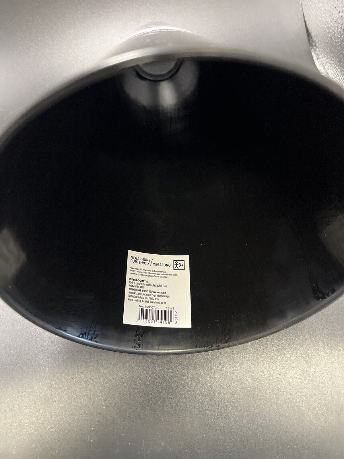 The Black Megaphone Cheerleader Dress Up Halloween Child Costume Accessory is a one size kids' costume accessory by Amscan. It features a black color with a cheerleader theme, perfect for Halloween dress-up. The megaphone accessory is 8 1/2 inches in size and is designed for kids of any gender to complete their cheerleader costume.