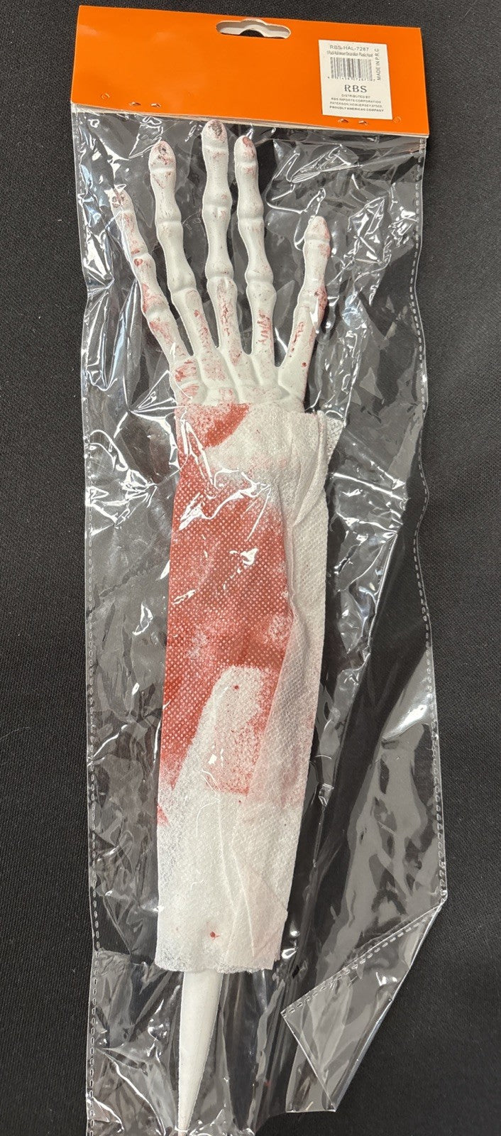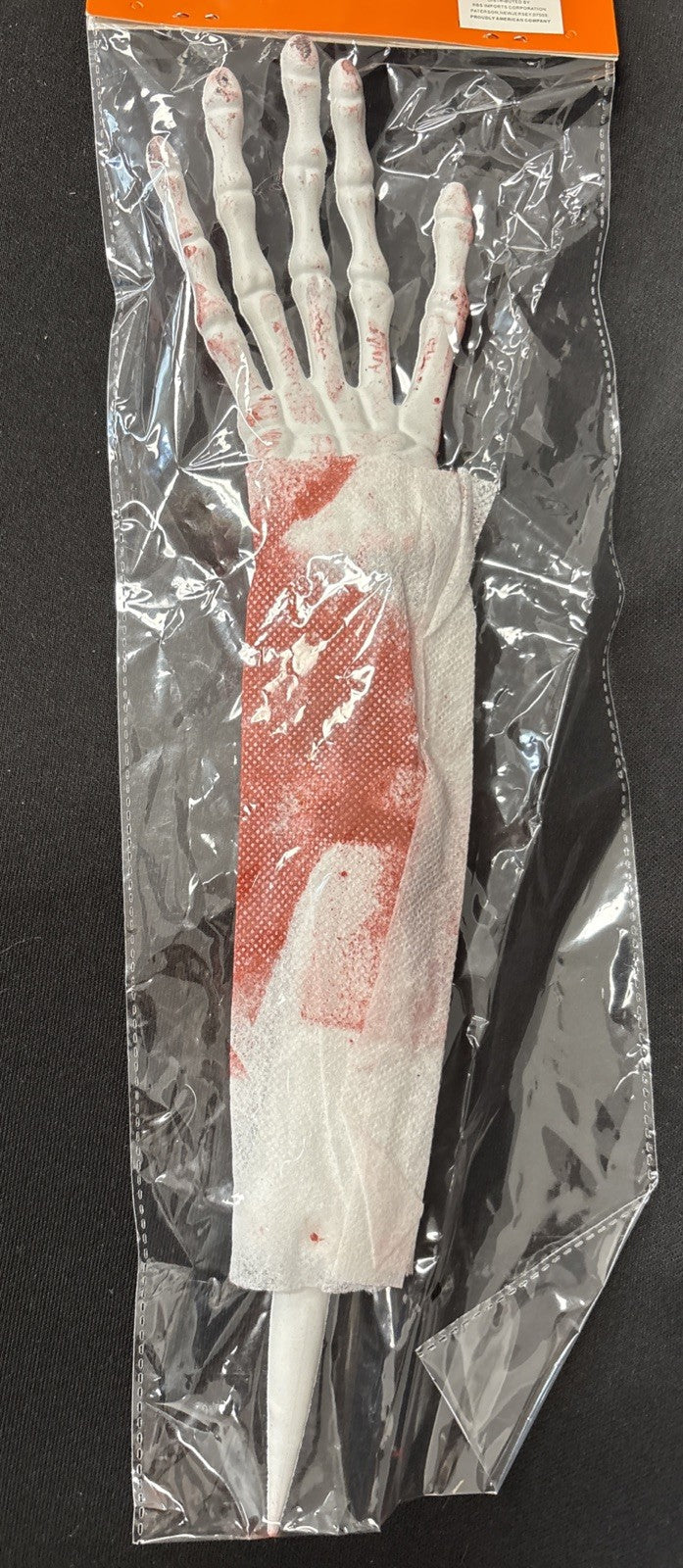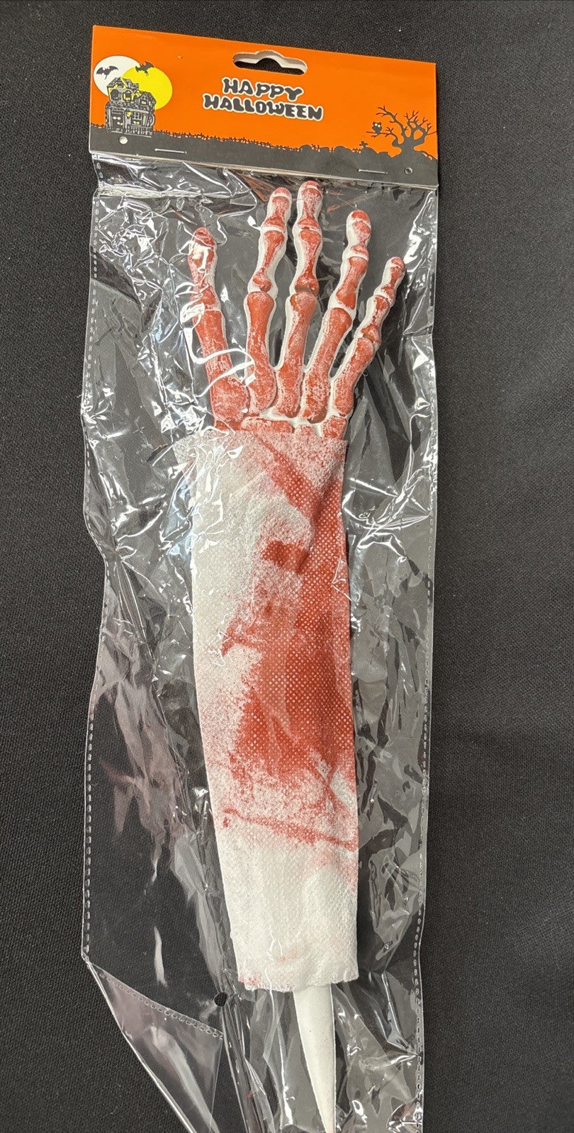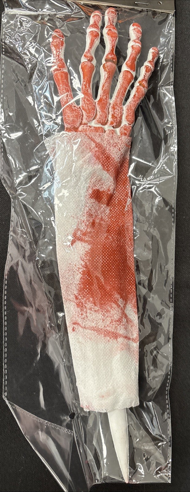 The Bloody Skeleton Arm Halloween Prop is a medium-sized figurine made of plastic, measuring 15 inches in length. This prop is designed specifically for Halloween decor, adding a spooky and chilling touch to any room. Perfect for creating a creepy atmosphere at Halloween parties or for decorating your home during the festive season, this figurine is sure to give your guests a good scare.