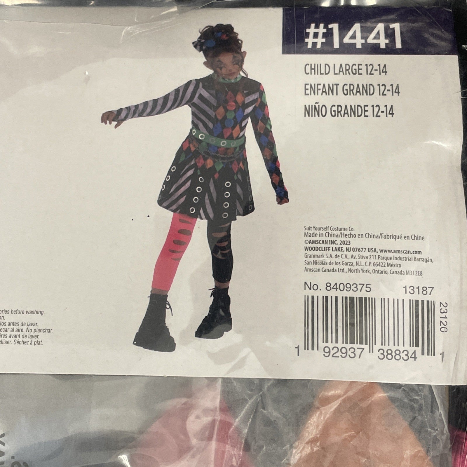 The Carnival Terror Clown Girl Suit Yourself Fancy Dress is a colorful and playful outfit perfect for Halloween or special events. Made of polyester material, this large size costume features a clown theme with a complete outfit design by Amscan. The multi-color design adds a fun and vibrant touch to the ensemble, making it a standout choice for young girls looking to dress up in a unique and eye-catching costume. Perfect for bring imagination and whimsy to any costume party or event.