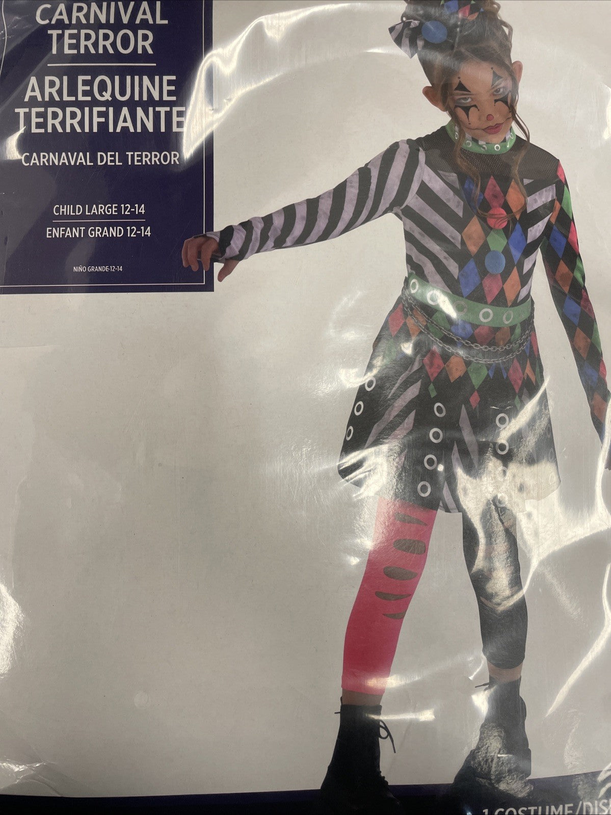 Carnival Terror Clown Girl Suit Yourself Fancy Dress Up Halloween Child Large