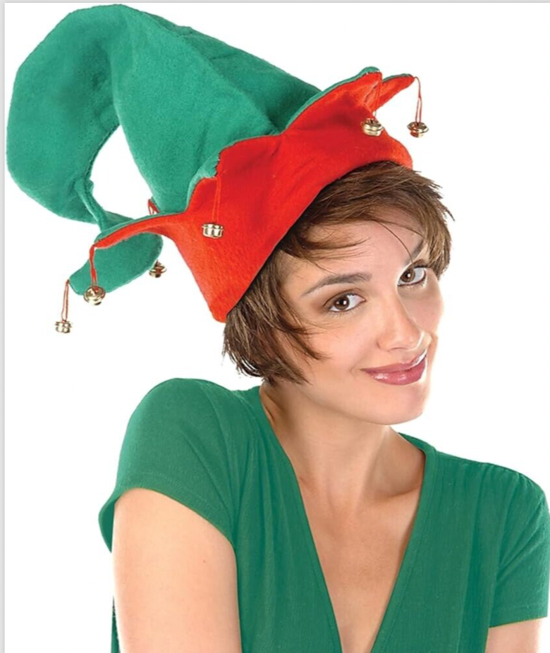 Christmas Elf Hat With Bells Party Accessory Adult Red And Green