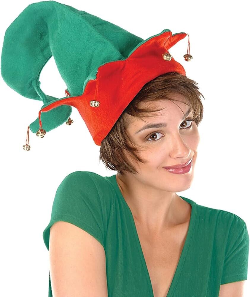 The Christmas Elf Hat by Forum is a festive party accessory perfect for the holiday season. This adult-sized hat features a vibrant red and green color scheme, with bells for added flair. Made from durable polyester material, this Elf Hat is designed for both men and women to enjoy. Imported from China, this Christmas-themed hat is a fun and stylish addition to any holiday ensemble.