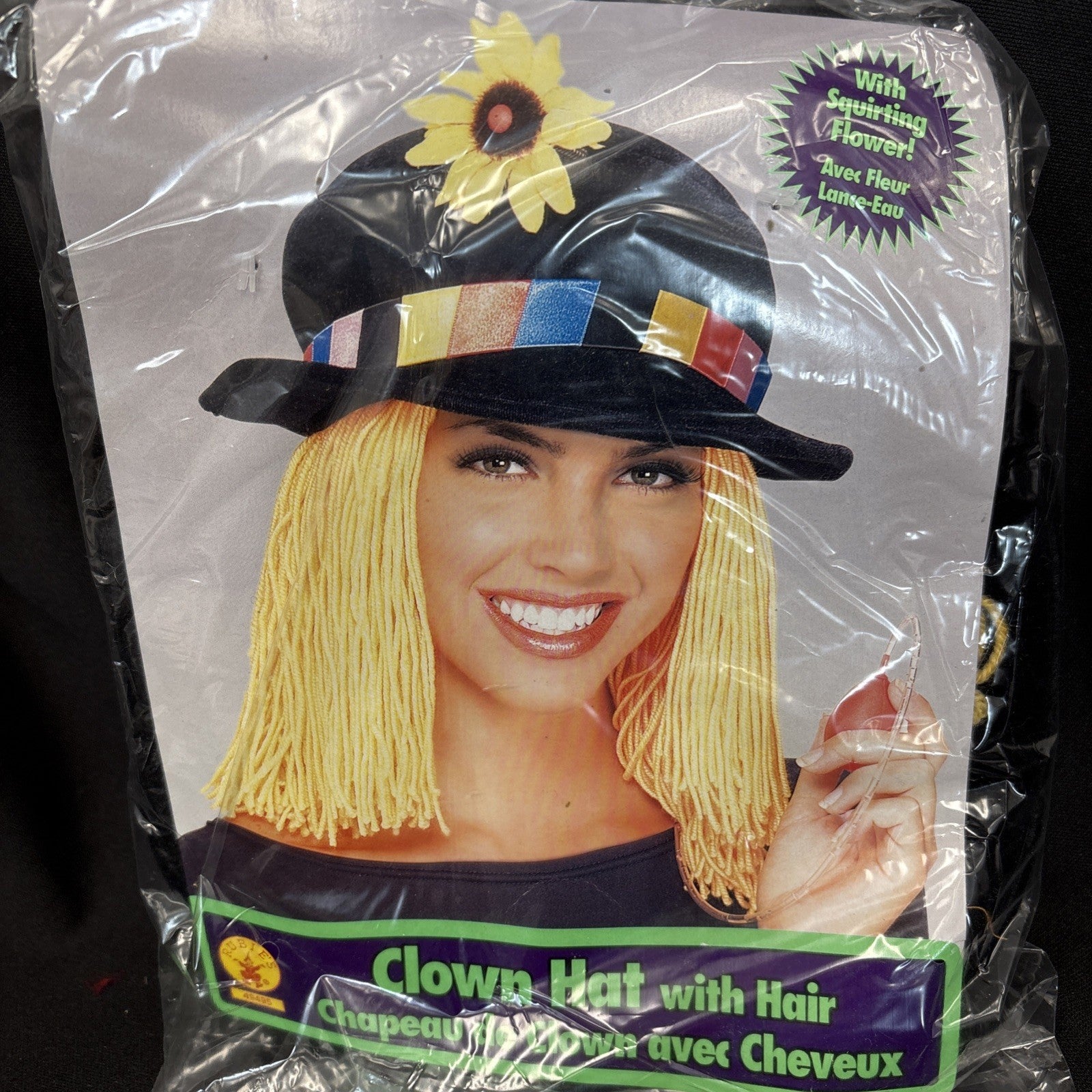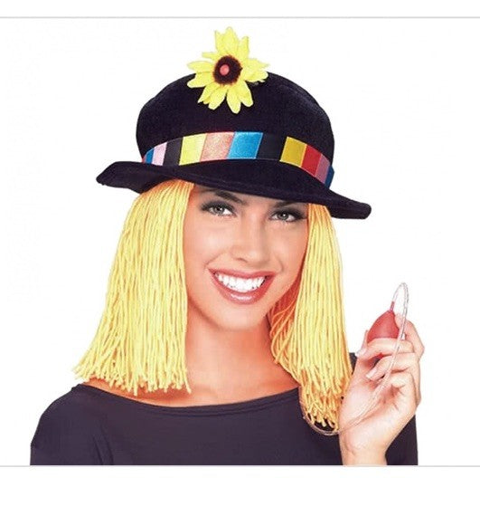 Clown Hat with Yellow Wig W/Squirting Flower Adult