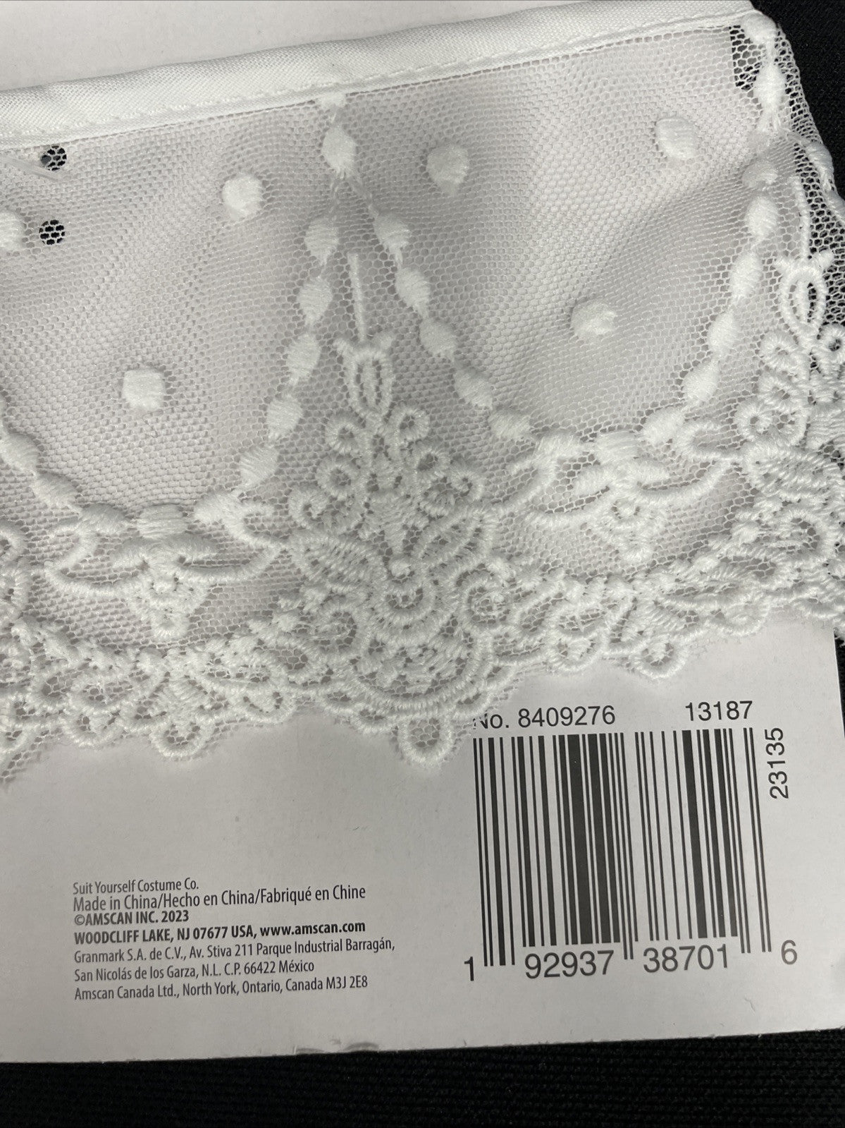 This adult unisex Halloween costume accessory by Amscan is a Coven Witch Collar in white. It is one size fits all and is perfect for adding a spooky touch to your costume. The collar is designed in a witch theme and is a great addition to your fancy dress ensemble.
