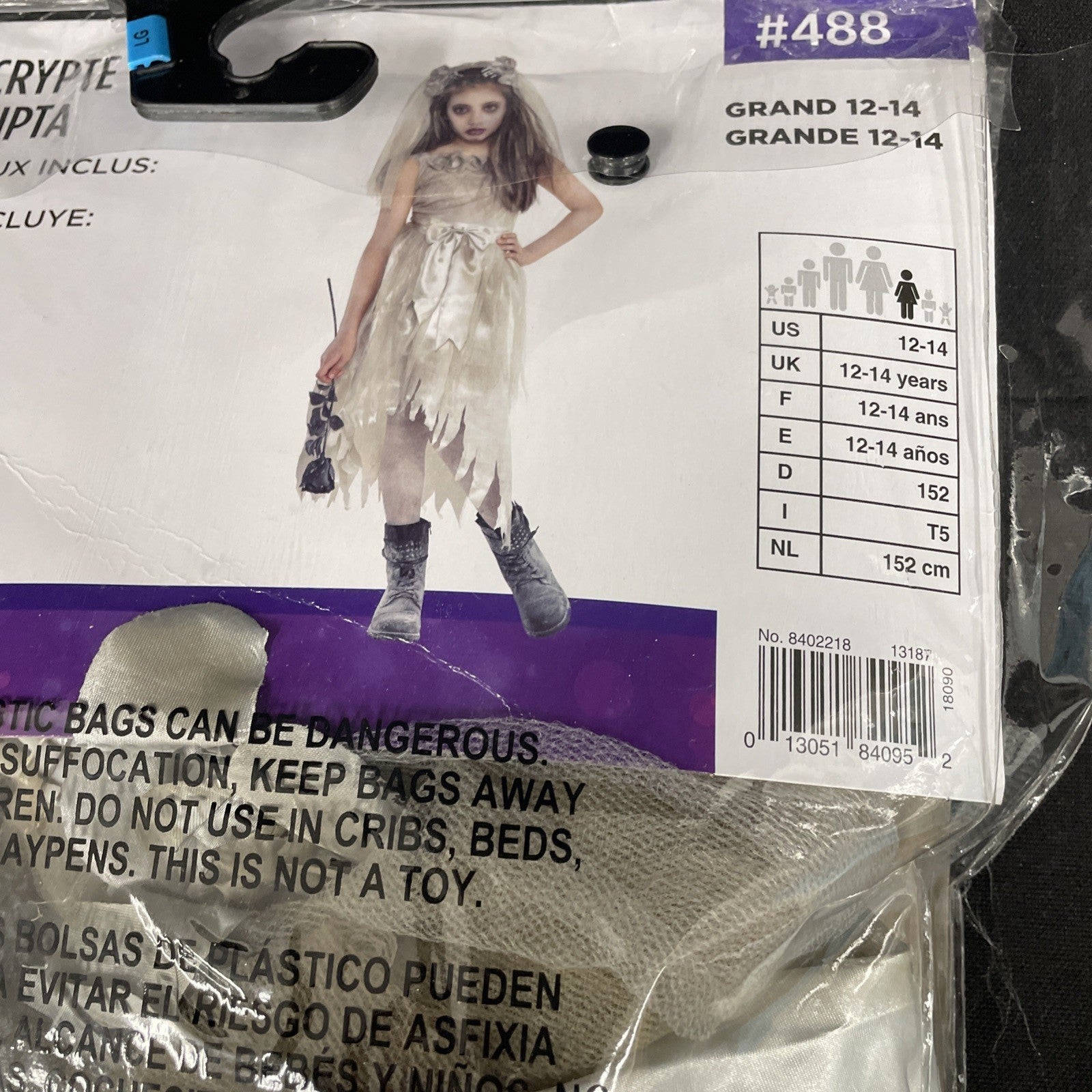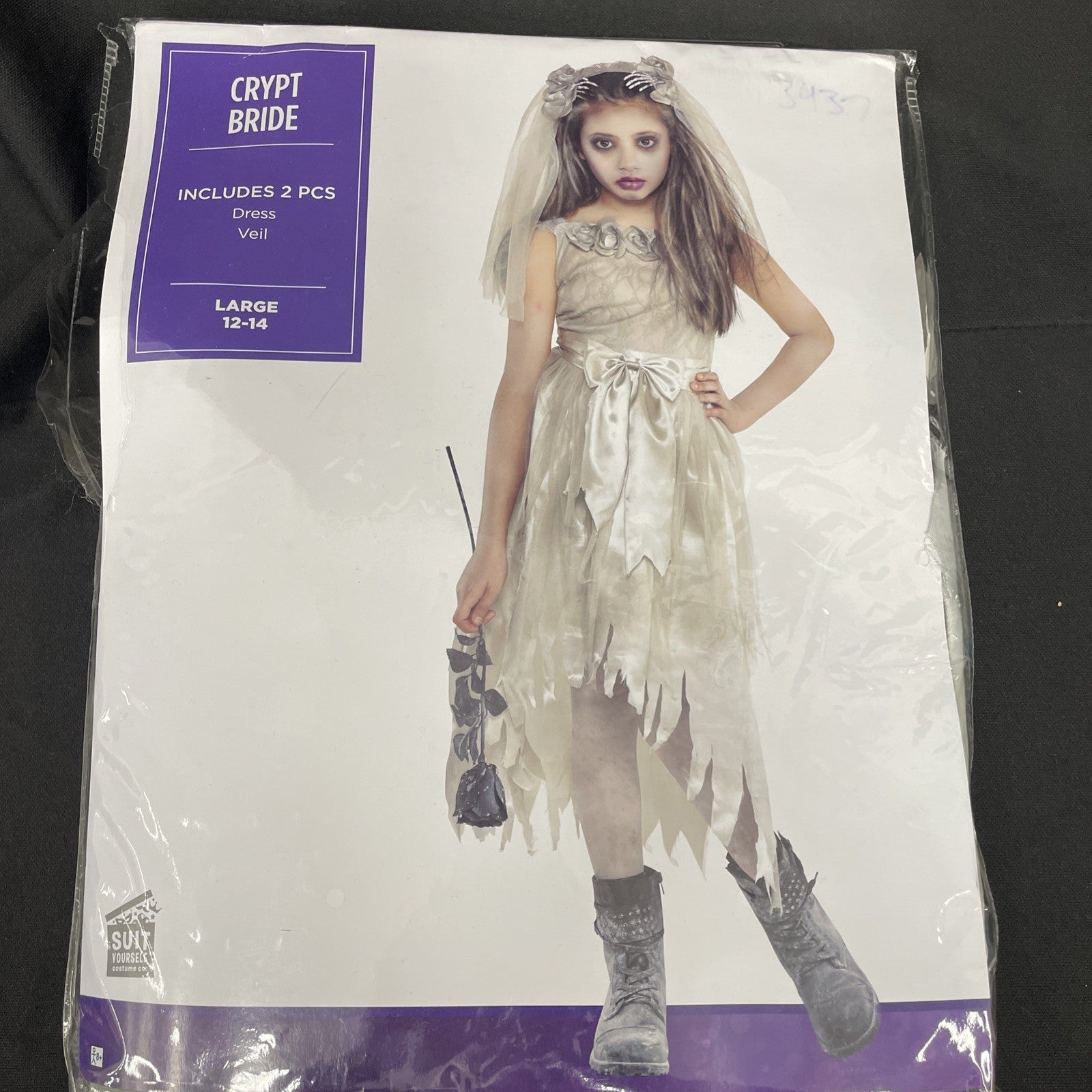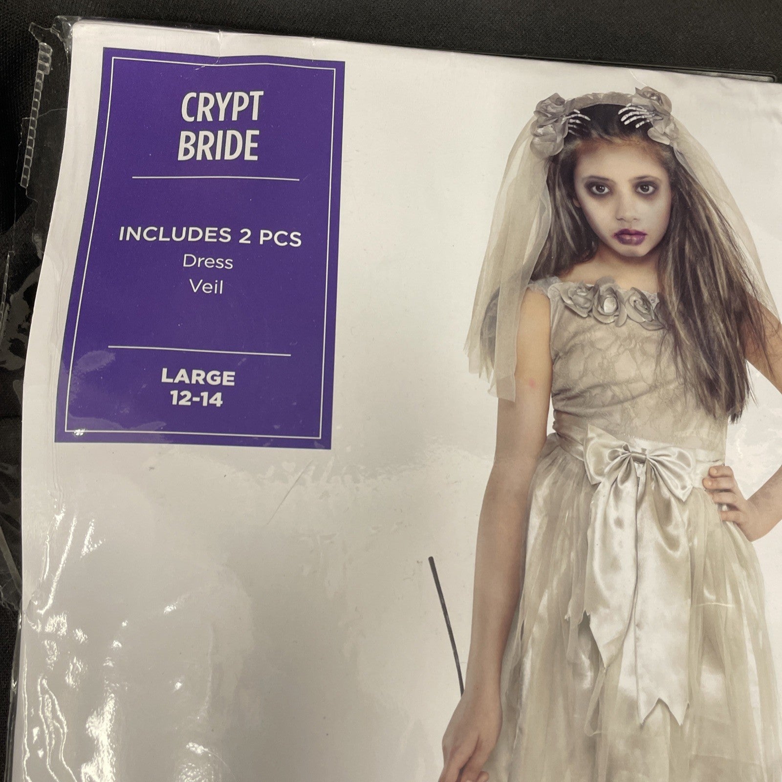 Crypt Bride Zombie Living Dead Girl Ghost Fancy Dress Up Halloween Child Large