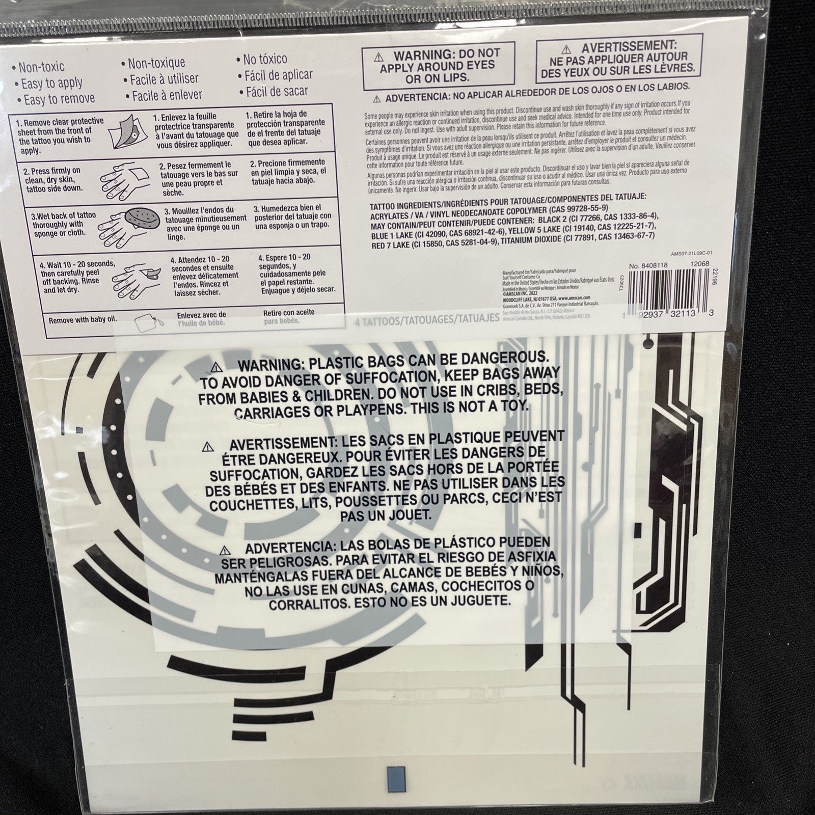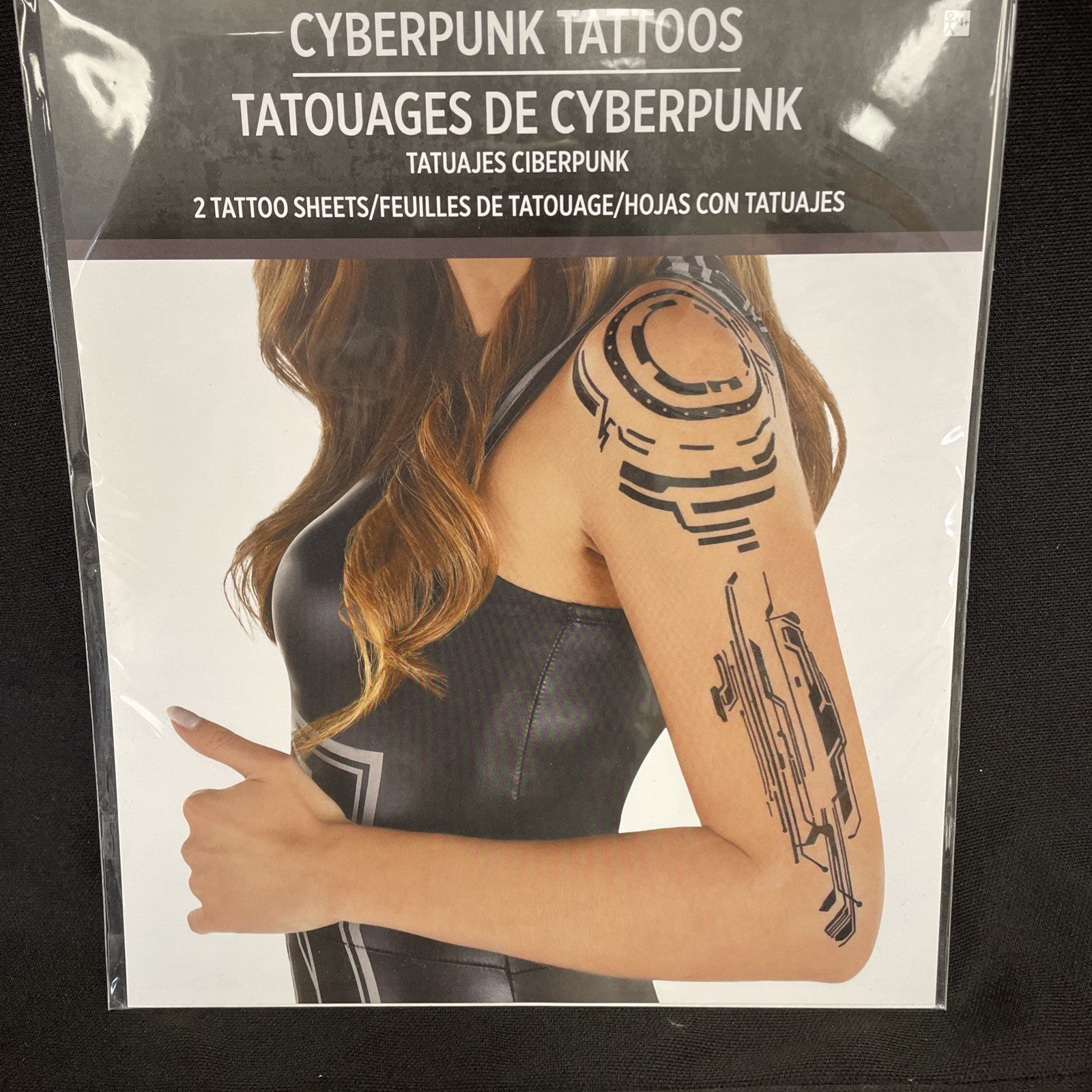 The Cyberpunk Tattoos by Amscan are Halloween costume accessories for adults. These black tattoos have a one-size-fits-all design and are suitable for both men and women. They are a great addition to a Cyberpunk or futuristic themed costume, adding an edgy and unique touch to your fancy dress outfit. They are easy to apply and perfect for completing your Halloween look.