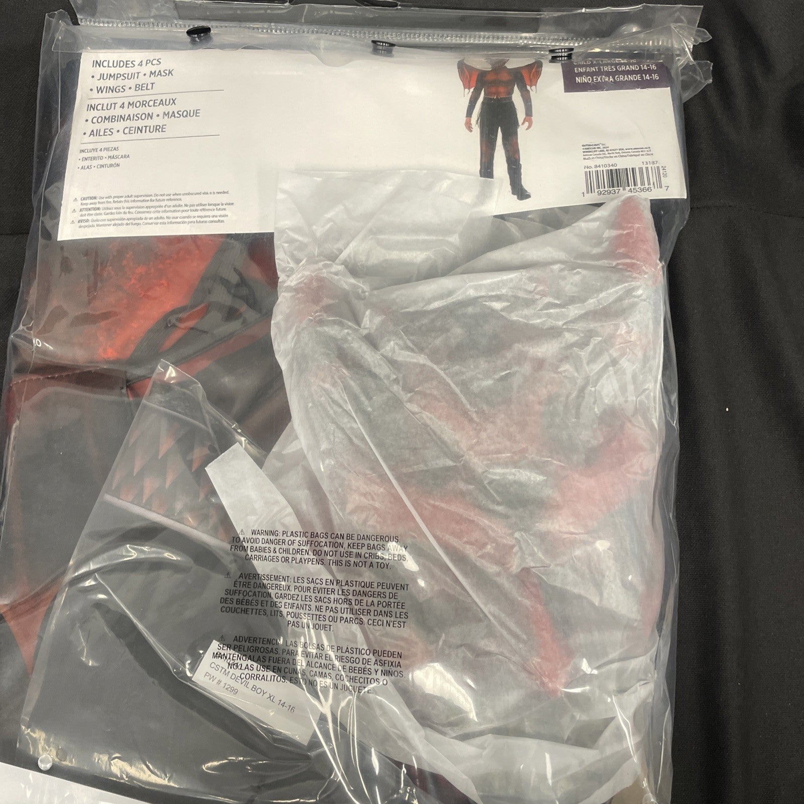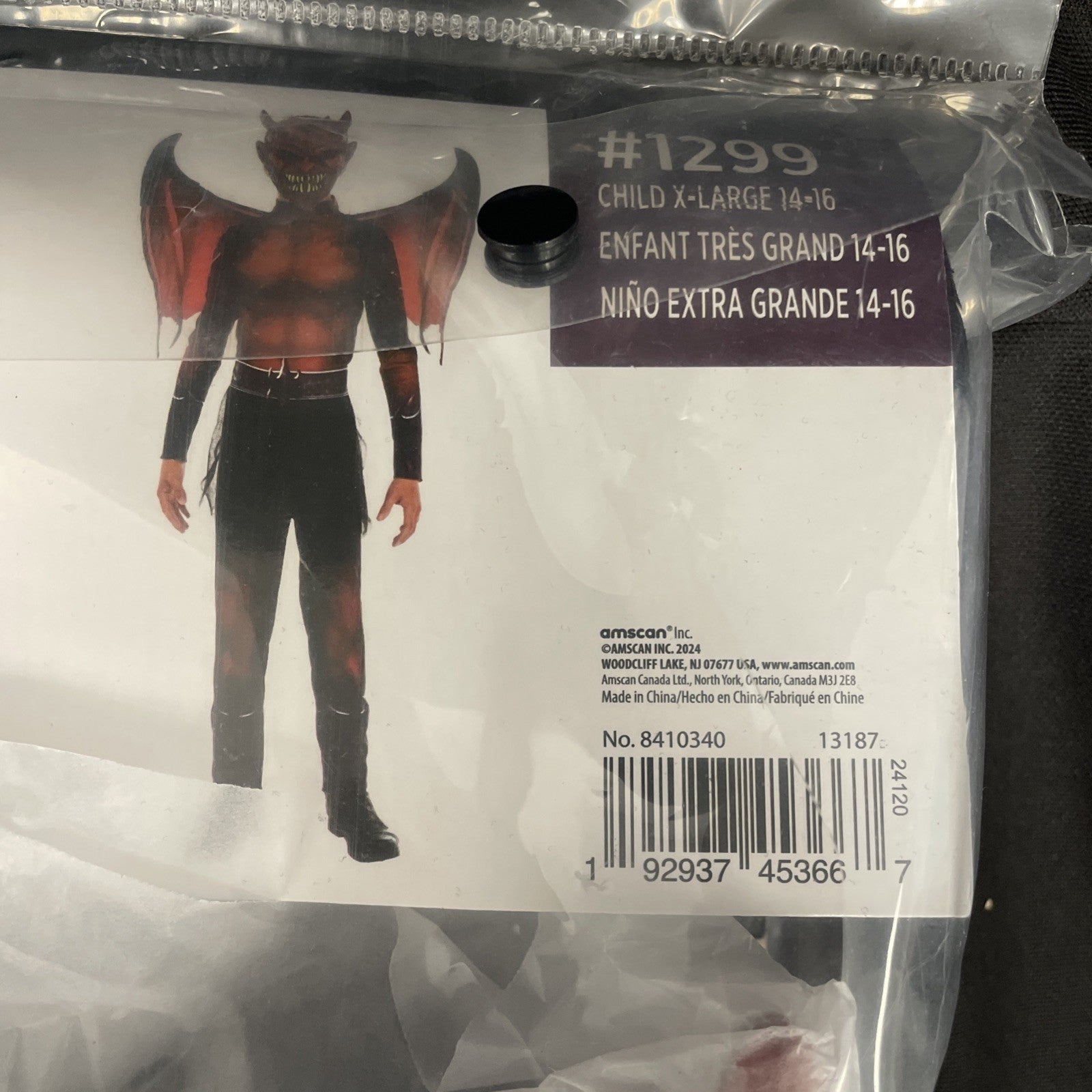This Devil Monster Demon costume is a fiery red and black outfit perfect for Halloween or fancy dress parties. The small size makes it ideal for children who want to channel their inner demon. Made from durable polyester material, this complete outfit from Amscan is sure to make a statement with its devilish theme and vibrant colors. Let your little one unleash their dark side with this fun and playful costume.