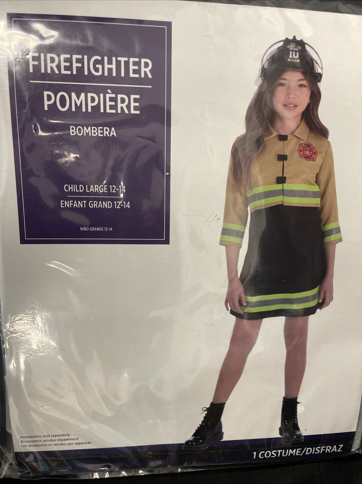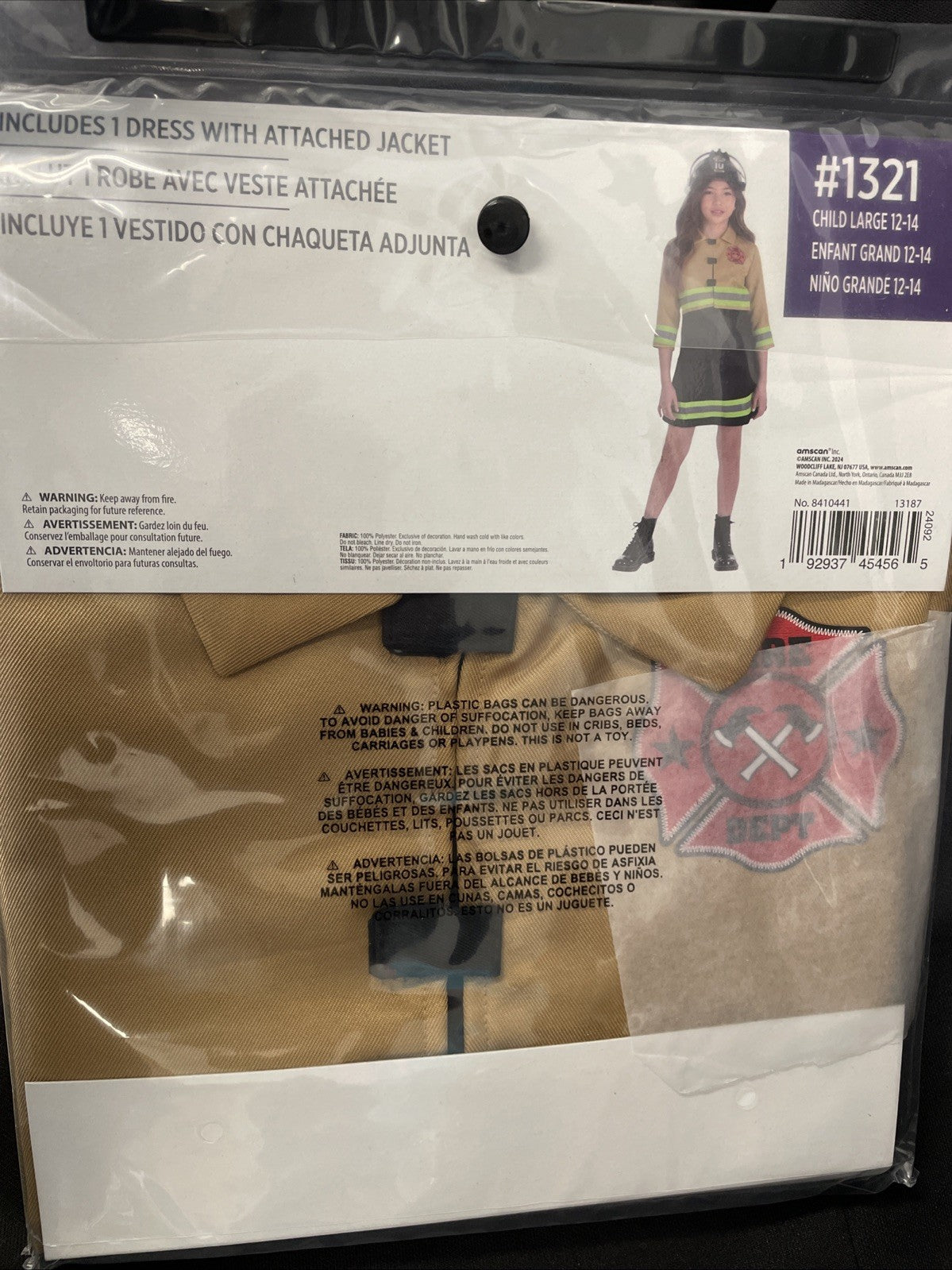 Firefighter Costume Dress & Jacket Girls Child Large 12-14 Halloween Costume