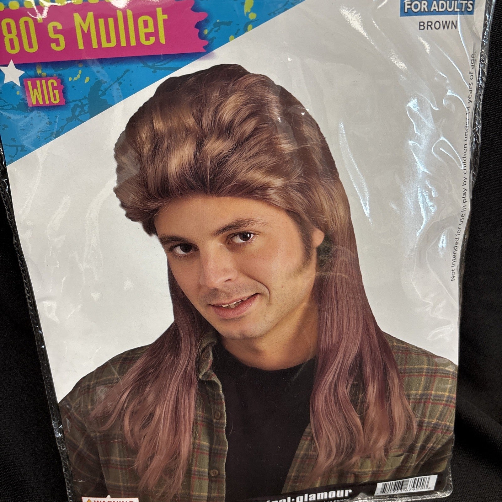 The Forum Novelties 80's Long Brown Mullet Wig is a themed costume accessory perfect for a biker, 80s rocker, or redneck look. Made from 100% synthetic fiber, this adult unisex wig features a brown color and classic mullet style. One size fits all, this China-made wig is a fun and affordable addition to any costume ensemble. Ideal for those looking to add a touch of nostalgia or character to their costume, this wig is sure to make a statement.