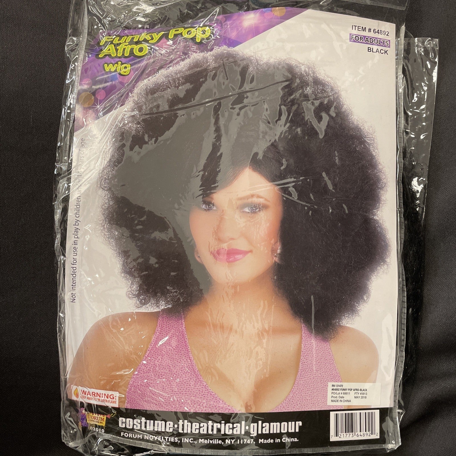 Funky Pop Afro Wig Black Disco Fancy Dress Up Halloween Adult Costume Accessory
