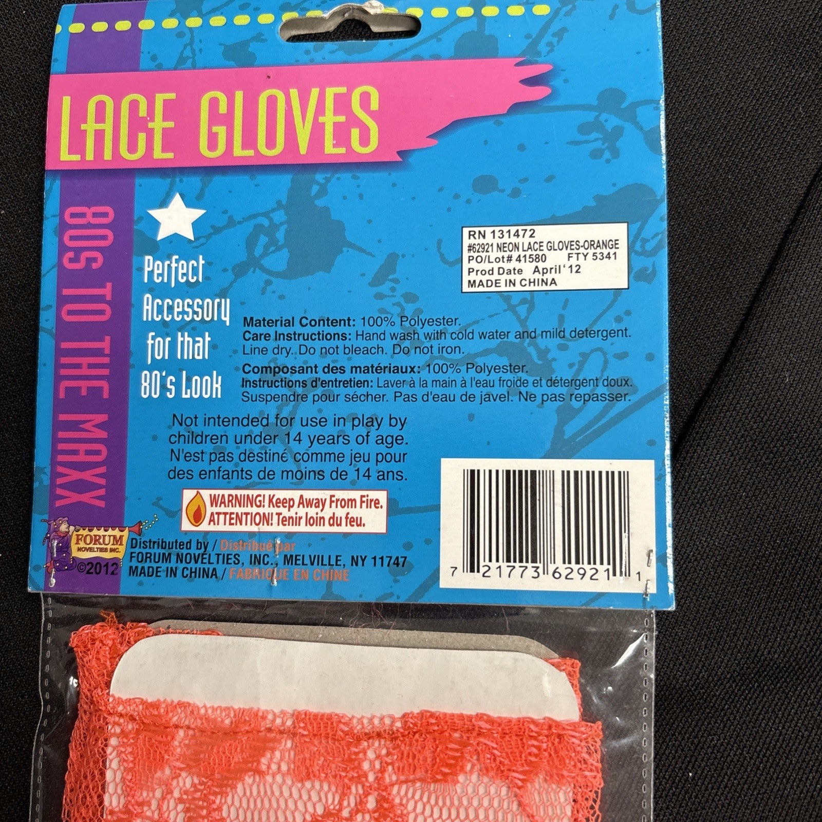 These 80's Retro Look Ladies 14" Long Neon Orange Lace Costume Gloves by Forum are perfect for adding a pop of color to any retro-themed outfit. The neon orange lace material gives off a fun and vibrant vibe, perfect for women who want to stand out and make a statement. Made in China, these one-size-fits-all gloves are sure to elevate any costume or special occasion ensemble with their unique 1980s theme and eye-catching design.