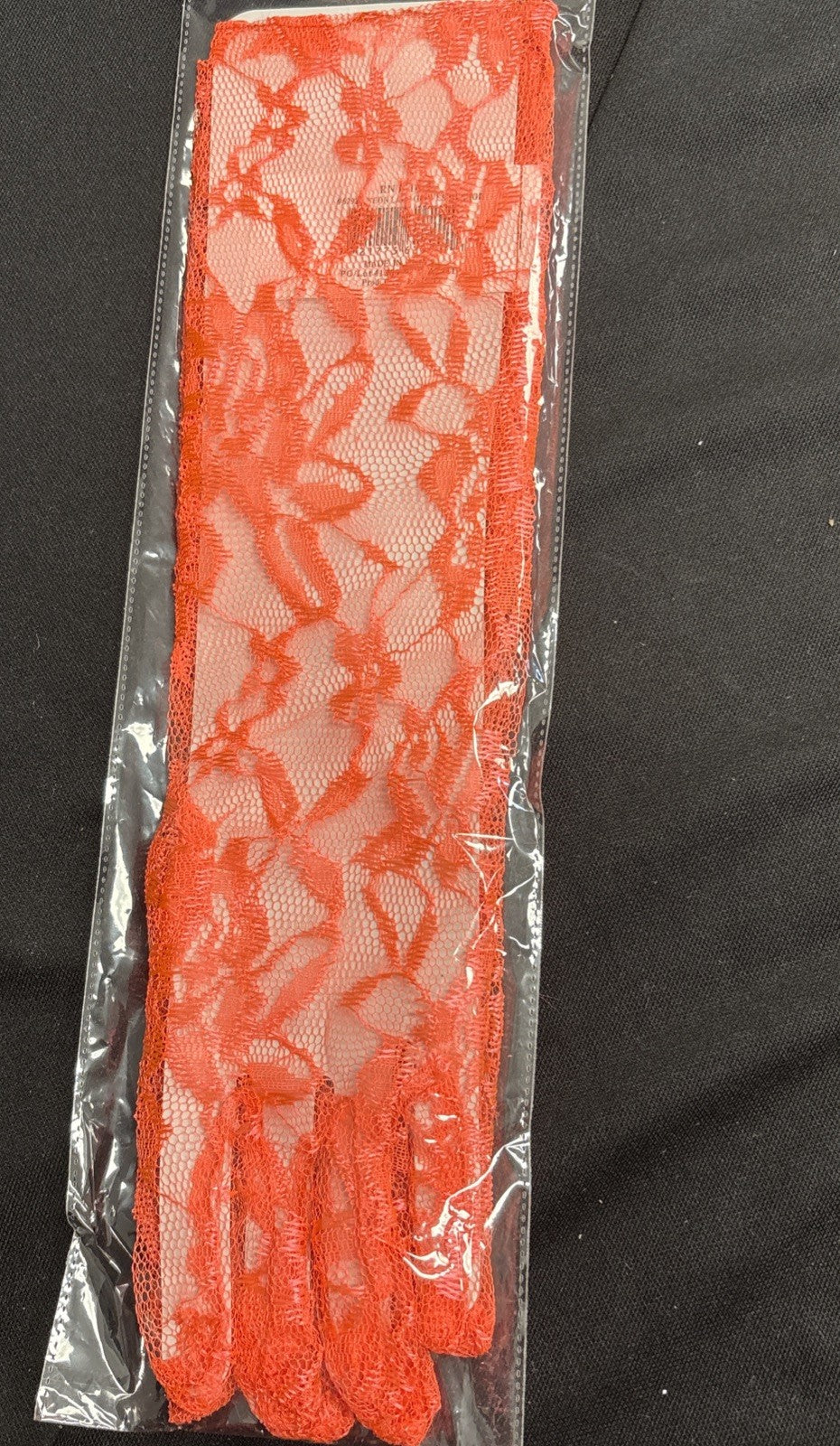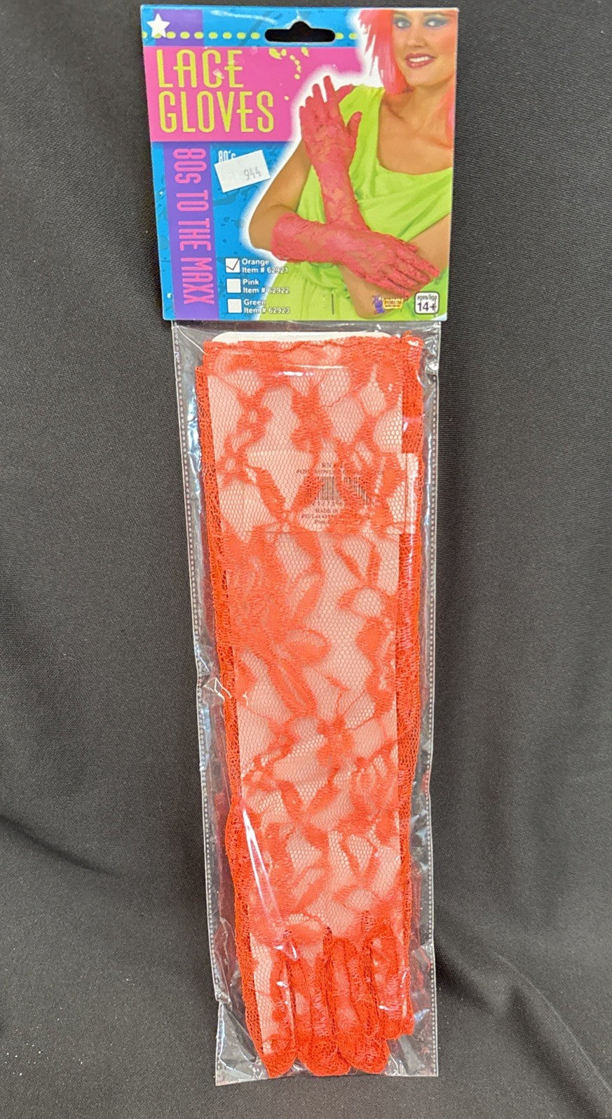 Gloves 80's Retro Lace Ladies 14" Long Neon Orange Lace Costume Gloves