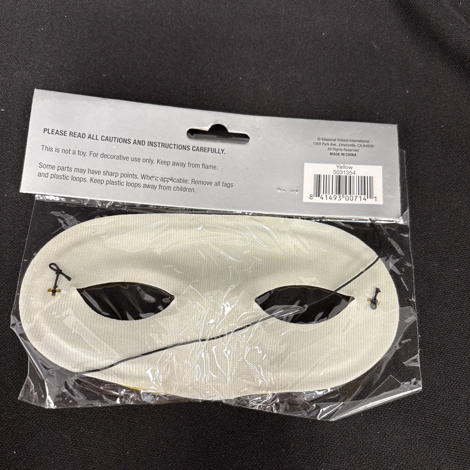 Satin half mask with thin elastic band. Yellow.