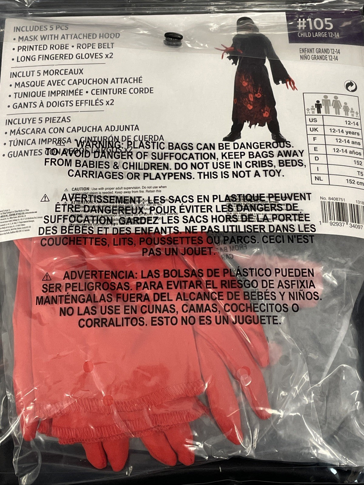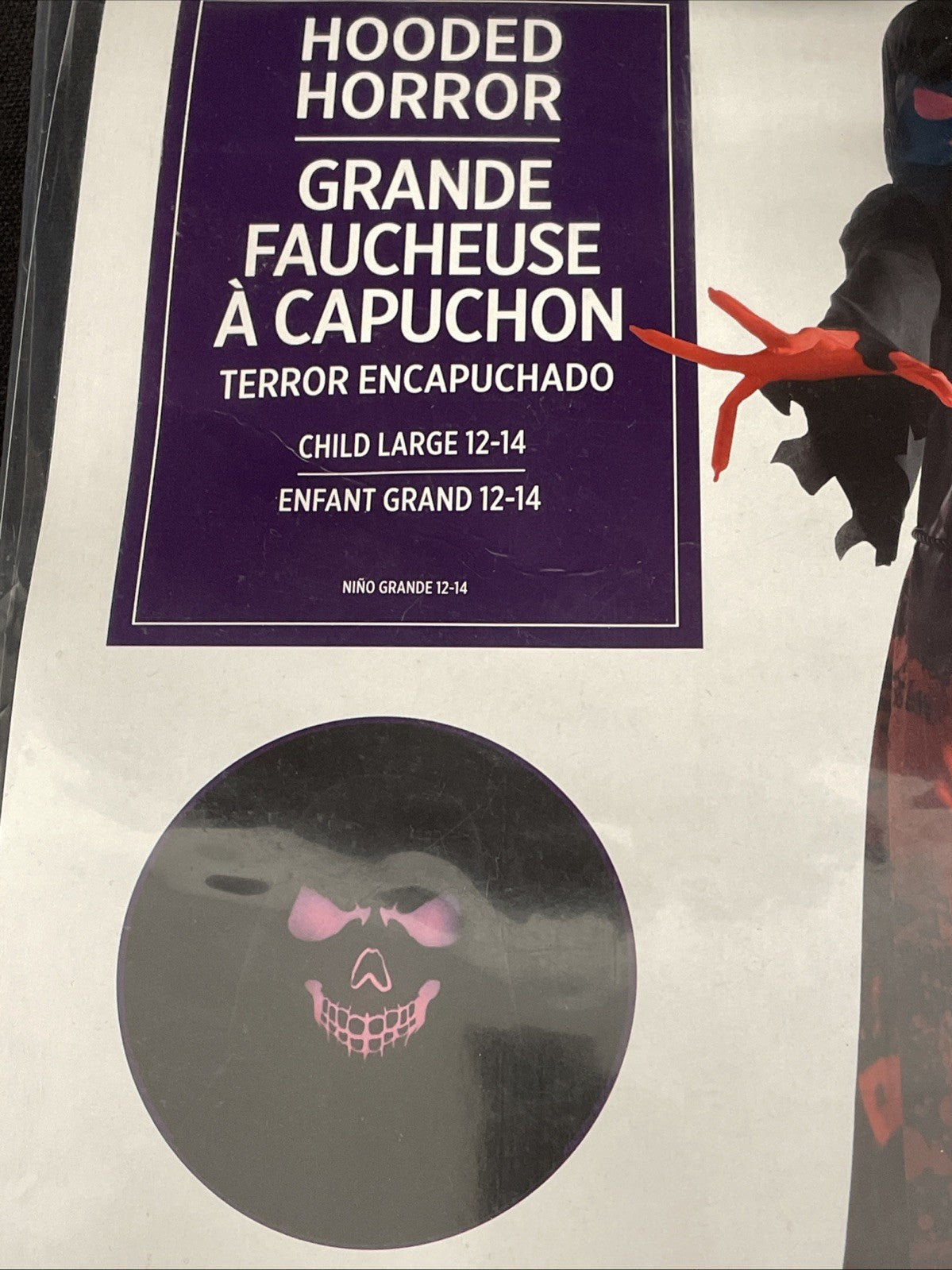 Hooded Horror Glow in the Dark Mask Large 12-14 Black Child Halloween Costume