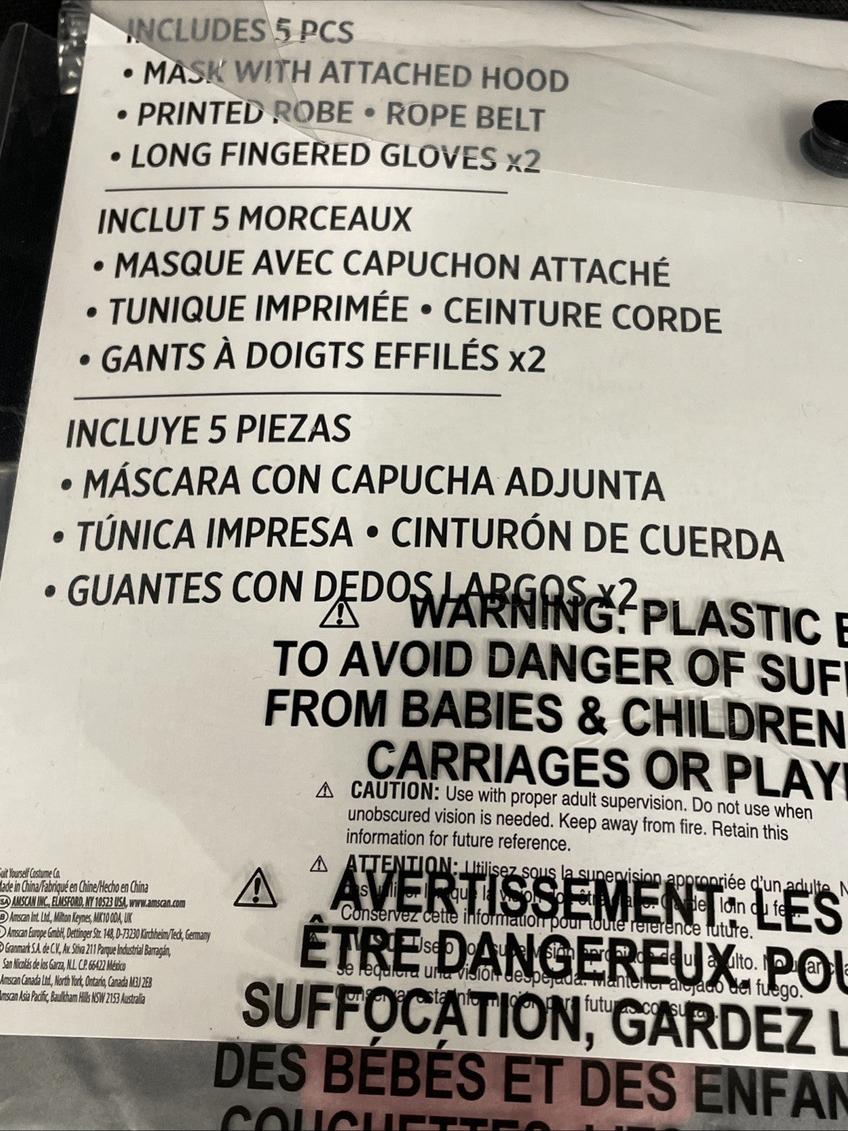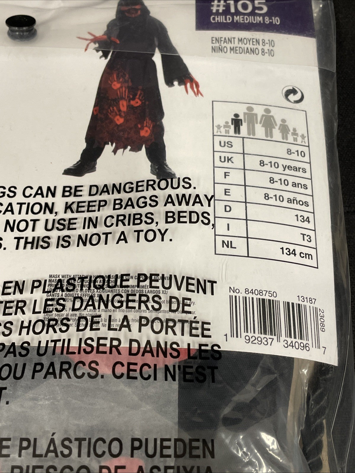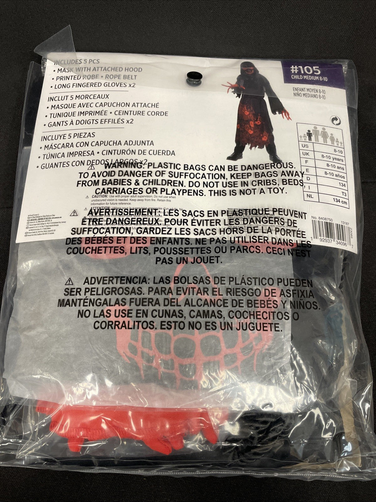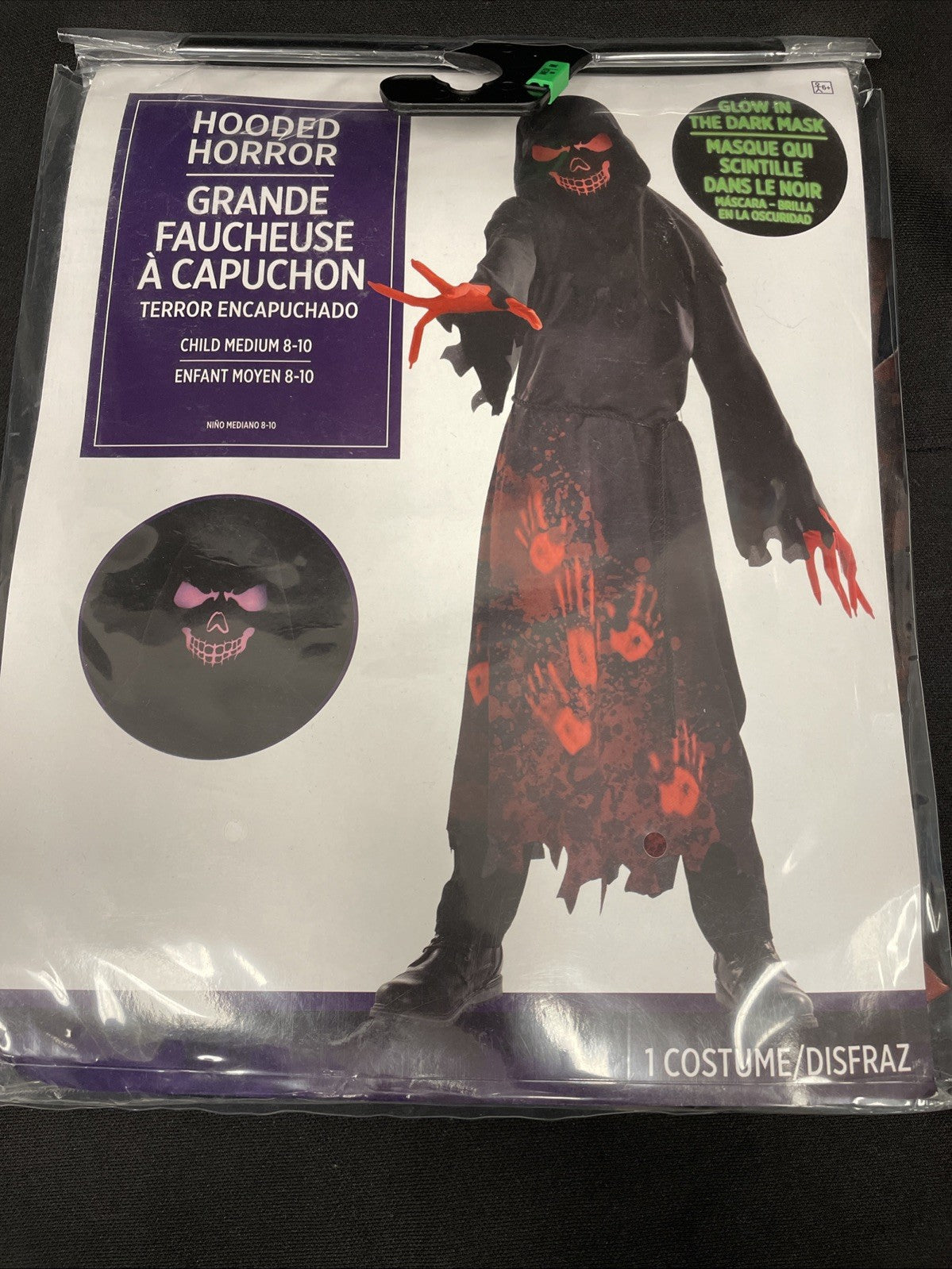 Hooded Horror Glow in the Dark Mask Medium 8-10 Black Child Halloween Costume
