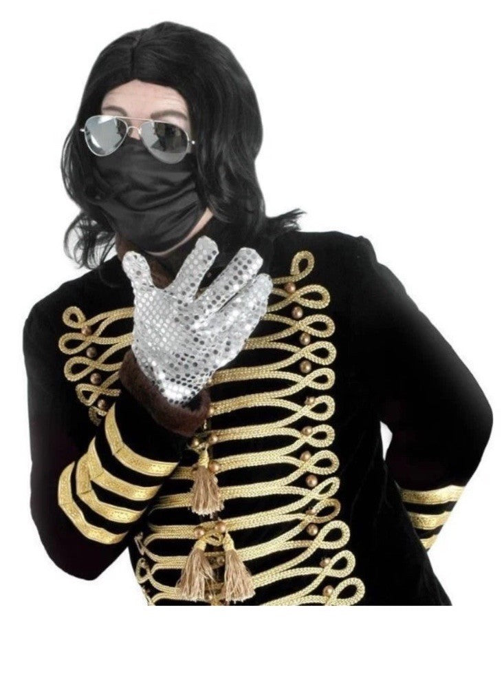 The King of Pop Music Video Costume Kit is a fun and stylish accessory perfect for Halloween or themed events. This kit includes a wig, mask, sunglasses, sequin glove, and other eye-catching elements that will help you dance the night away as the ultimate pop star. Stand out from the crowd with this over-the-top costume that pays homage to the famous King of Pop.