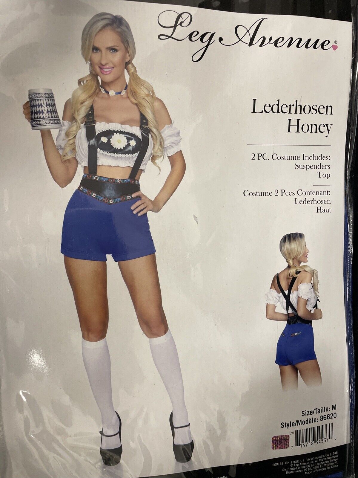 Get ready for Halloween with this beautiful Leg Avenue 2 PC Lederhosen Honey Women's Costume in size Medium includes shorts w/ suspenders and top