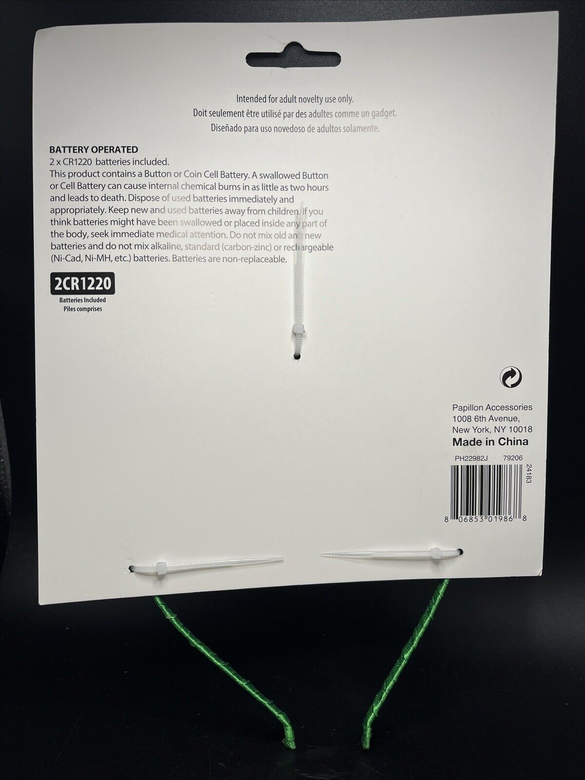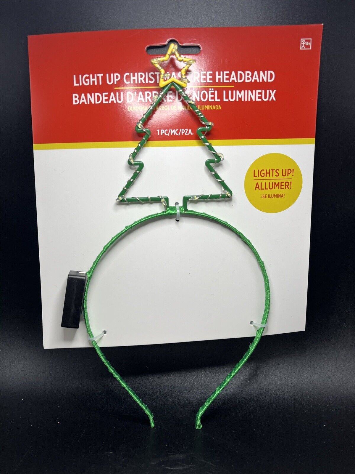 This is a festive light-up Christmas tree headband by Papillon Accessories, designed for adult unisex use. It is made of green polyester material, perfect for adding a touch of Christmas spirit to your outfit. The headband features a Christmas theme with lights, making it a fun accessory for holiday celebrations.