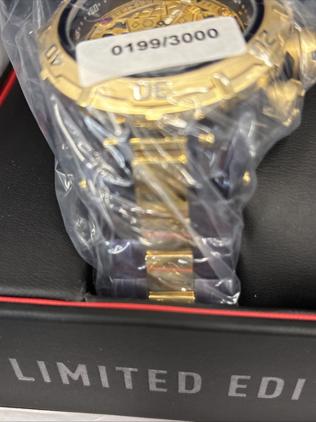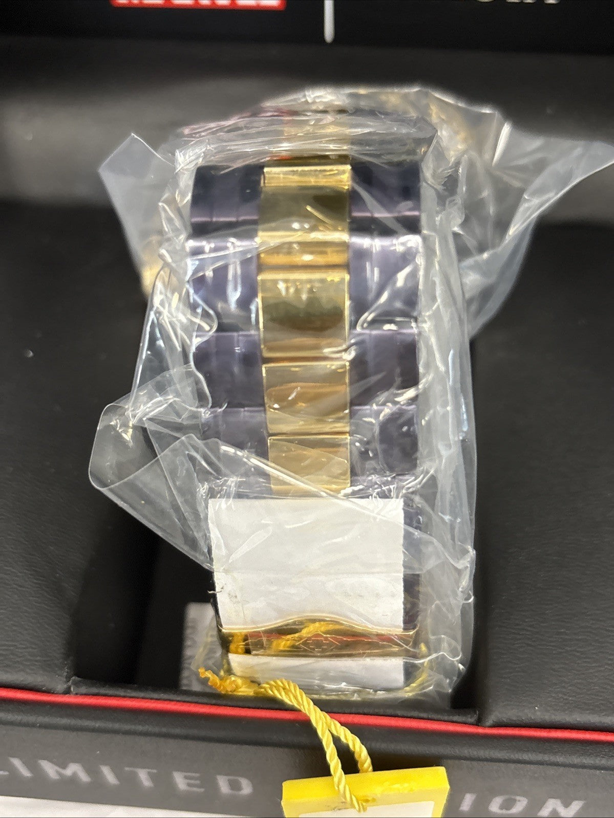 This impressive Invicta Reserve Marvel watch features a precise Quartz movement as well as a gold, purple, steel case. Its , metal dial is enclosed by a highly protective Flame Fusion Crystal. This watch is finished by a strong gold, purple, stainless steel band, and it offers 500 m water resistance.