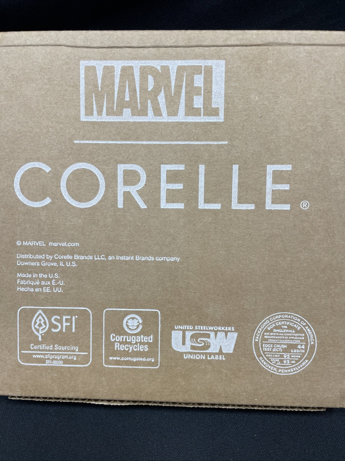 The Corelle Black Panther Plates Set includes four Limited-edition lunch and appetizer plate set, featuring stunning Black Panther theme art. plates featuring a Black Panther pattern, perfect for fans of the Marvel superhero. Made of durable Vitrelle glass, these plates are freezer, microwave, and dishwasher safe for easy use and cleaning. With a vibrant design and practical features, this set is a stylish addition to any table setting.