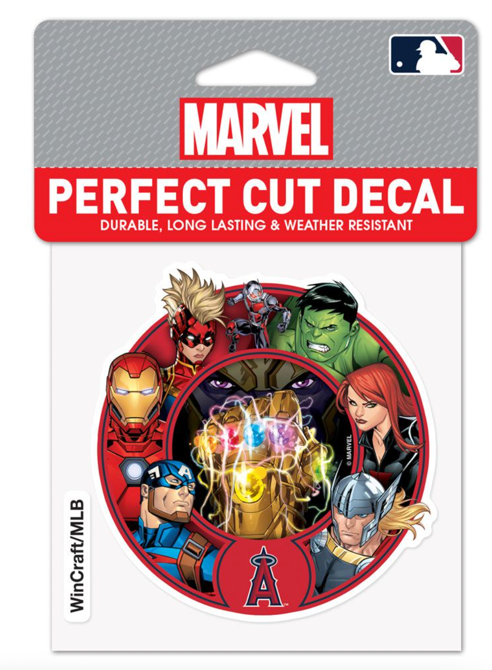 Showcase your love for the Angels with this Marvel Avengers Perfect Cut Decal 4"x4". This decal is perfect for any fan looking to add some team spirit to their car, laptop, or any smooth surface. The high-quality vinyl material ensures long-lasting durability, while the detailed design featuring the iconic Avengers superhero characters adds a touch of uniqueness.