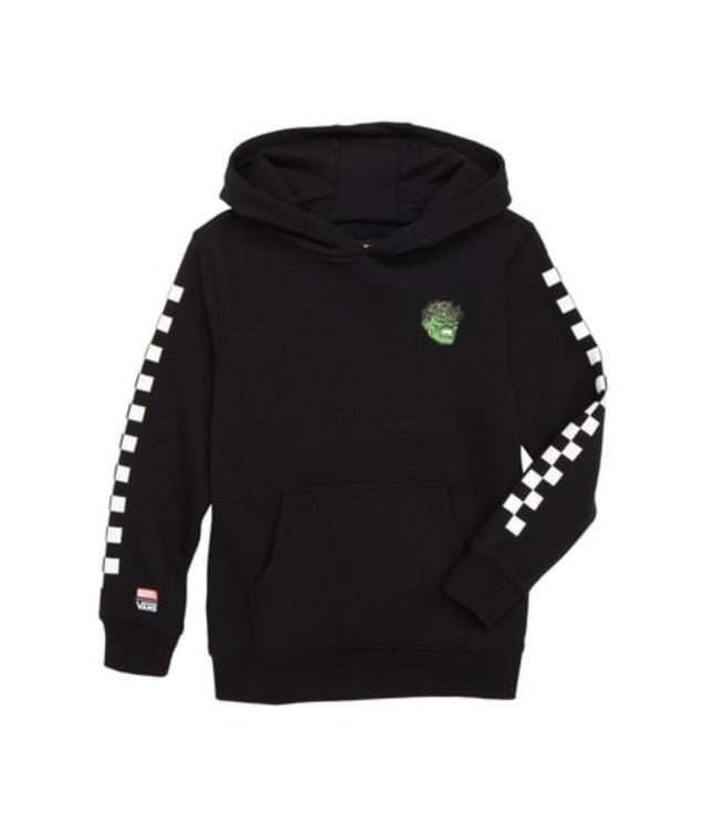 Classic skate style and iconic superheroes join forces in a collaboration that's as epic as the adventures of the Avengers. This soft fleece hoodie pairs the Hulk with signature checkerboard patterning down the sleeves. Style Name: Vans X Marvel Avengers Hulk Hoodie