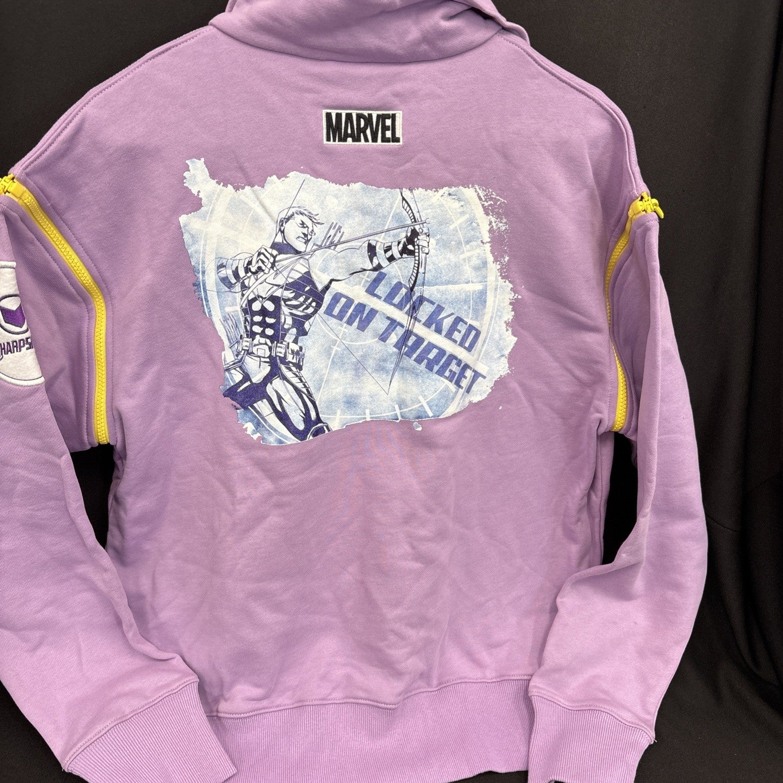 FPX Marvel Hawkeye Graphic & Embroidered Lavender Heather 1/4 Zip Sweatshirt Wms