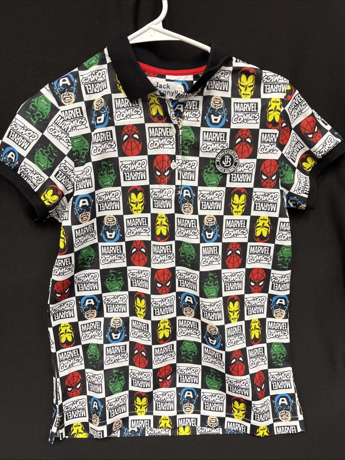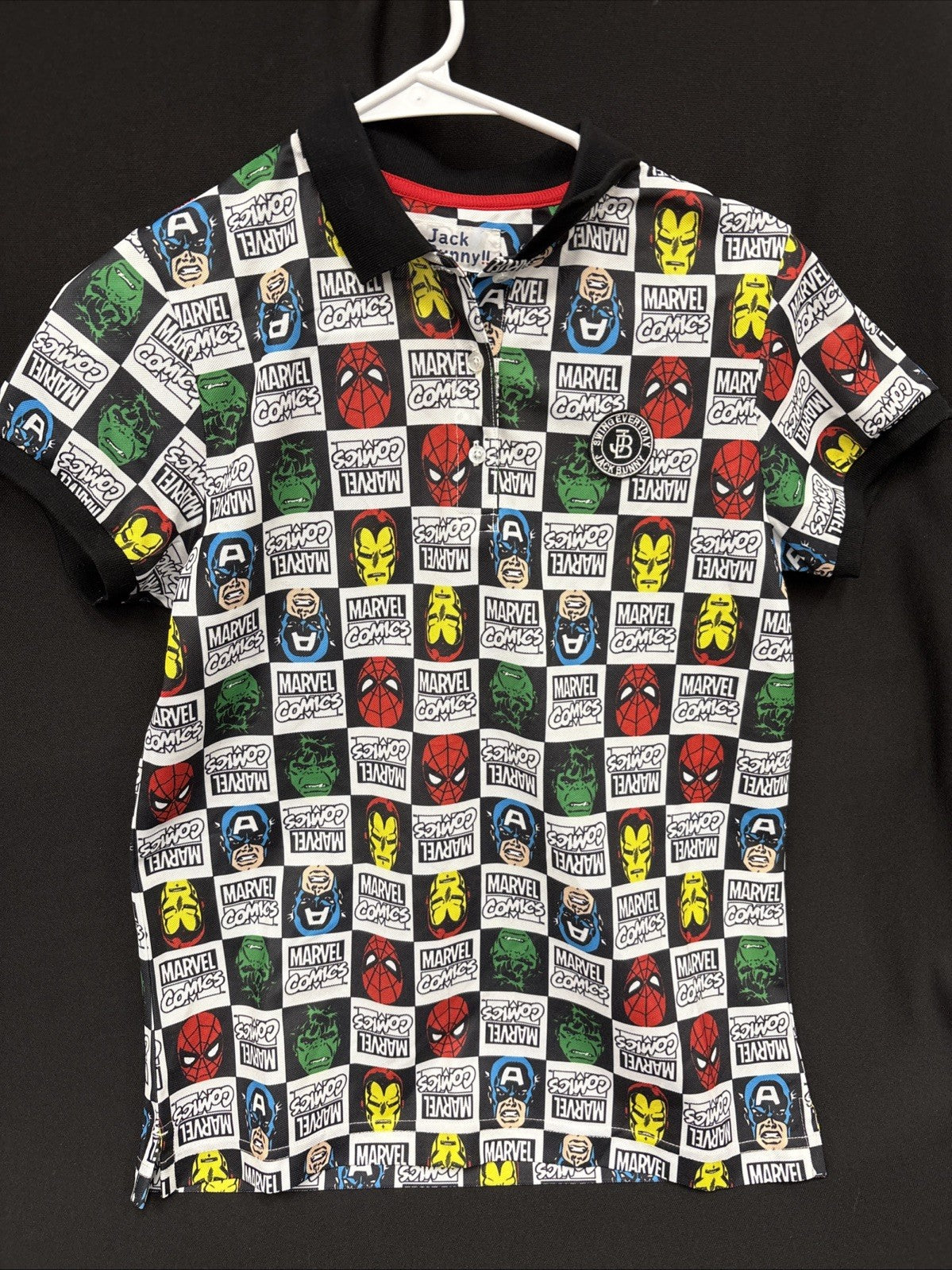 Jack Bunny Marvel All Over Multi Color Print Golf Shirt Kids Medium