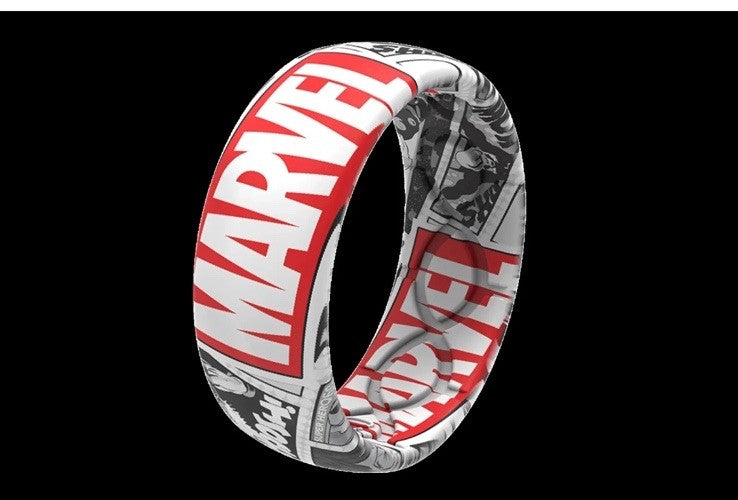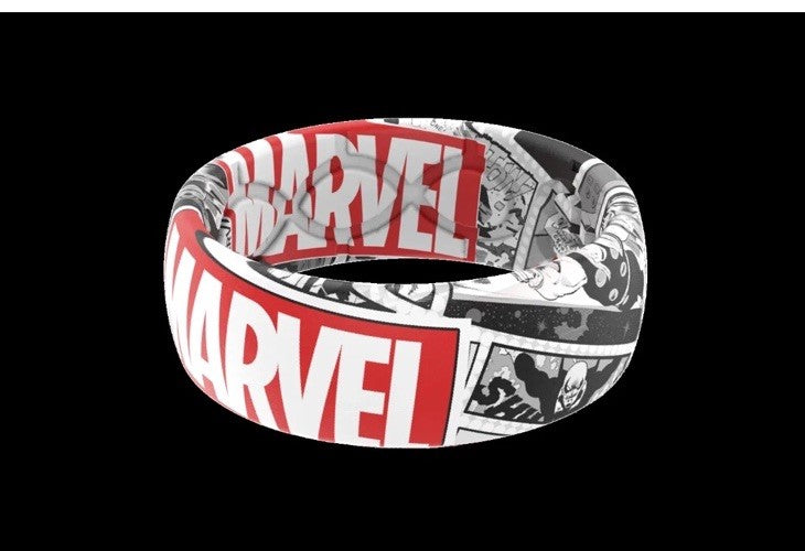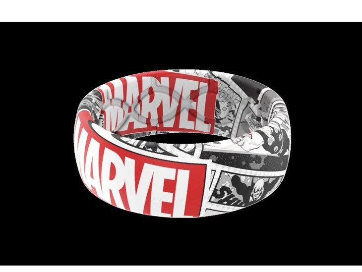 Marvel Groove Life "Marvel Logo Black & White Comic" Silicone Ring Size 10