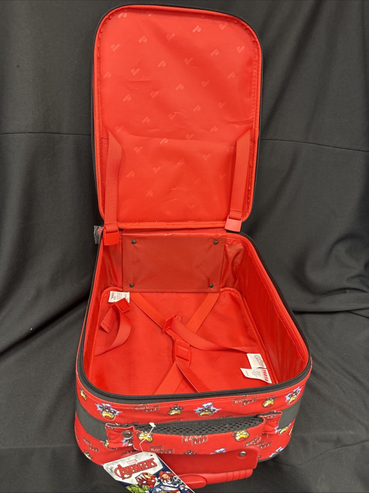The Marvel Iron Man Kids trolley Luggage Bag is a red suitcase designed specifically for children. With wheels for easy rolling, this unisex children's luggage features the iconic Marvel Iron Man brand, making it a fun and functional travel accessory for young fans of the superhero. Perfect for short trips or as a convenient carry-on option, this luggage adds a touch of excitement to any journey.