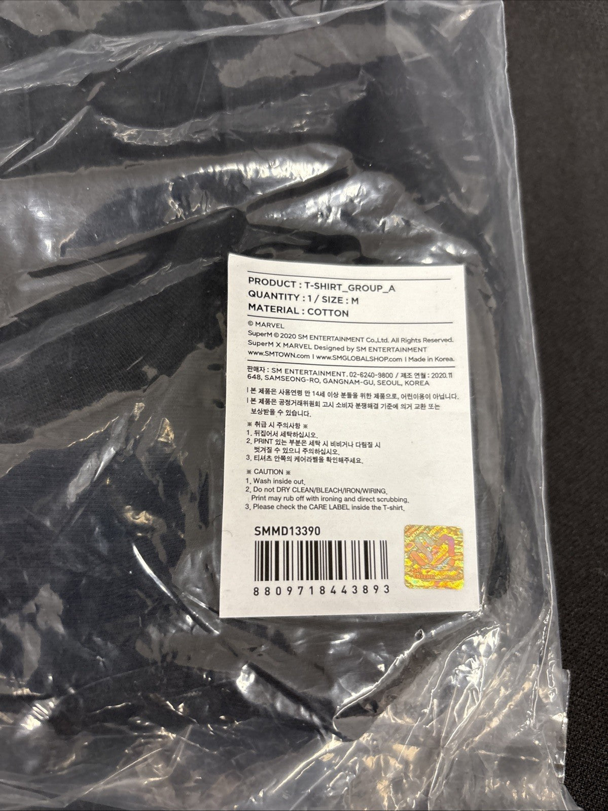 The Men’s Medium Marvel Super M Black Graphic Cotton T-shirt is a stylish and comfortable addition to any man's wardrobe. Made from soft cotton material, this t-shirt features a short sleeve design and a bold Super M graphic print on the front. The classic black color and regular fit make it versatile for everyday wear, while the unique Super M theme graphics