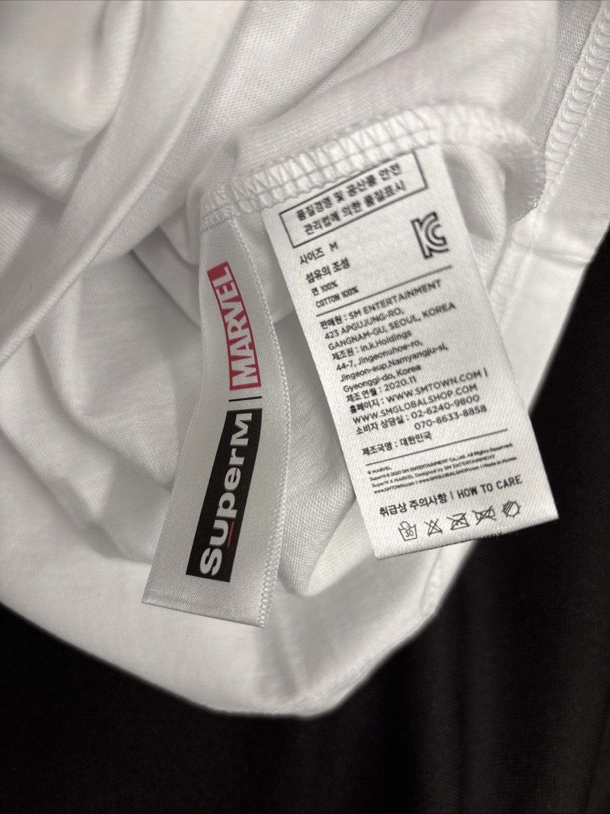 The Menâs Medium Marvel Super M White Graphic Cotton T-shirt is a stylish and comfortable addition to any man's wardrobe. Made from soft cotton material, this t-shirt features a short sleeve design and a bold Super M graphic print on the front. The classic black color and regular fit make it versatile for everyday wear, while the unique Super M theme graphics