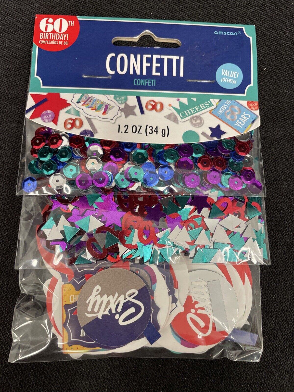 Amscan presents Your 60th Birthday Confetti Mix, a 1.2 oz pack perfect for celebrating a 60th birthday. The confetti features a festive mix of colors and shapes to add fun and excitement to your birthday party decorations. It is an ideal choice for adding a touch of sparkle and joy to the celebration.