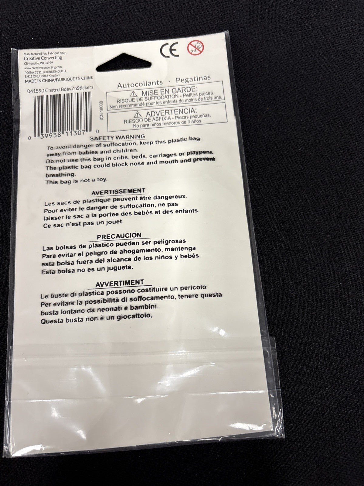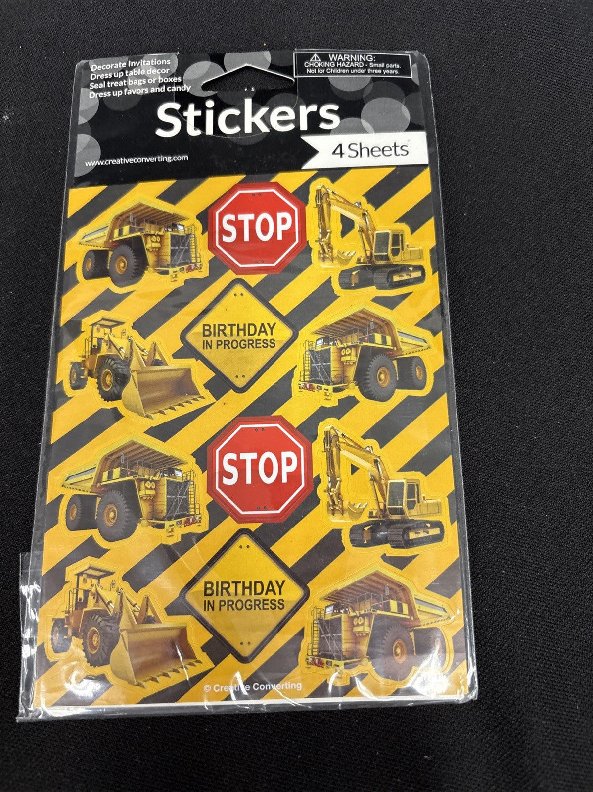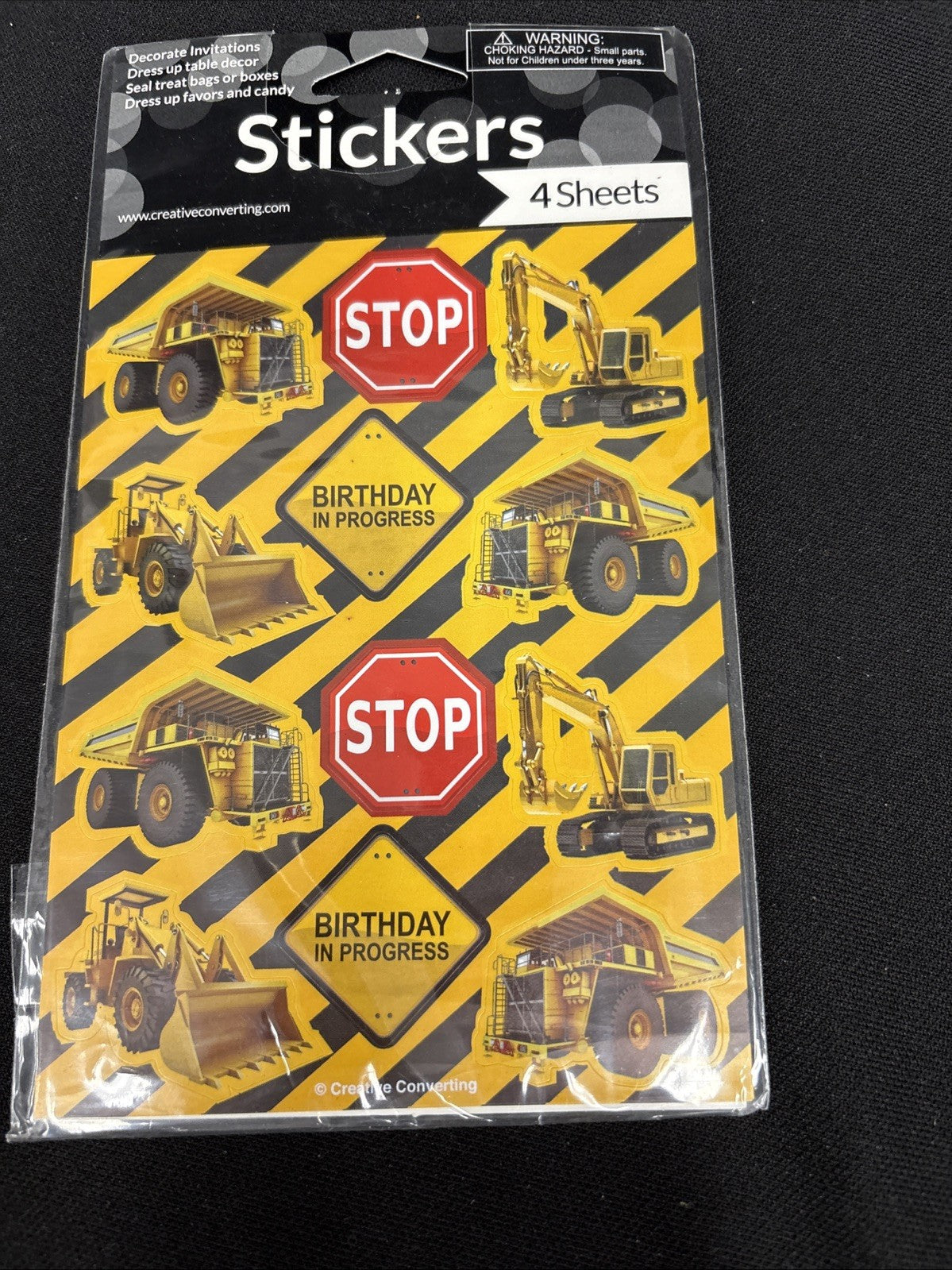 Construction Zone Value Stickers 4 Sheet Pack Boy Truck Party Favor Decoration