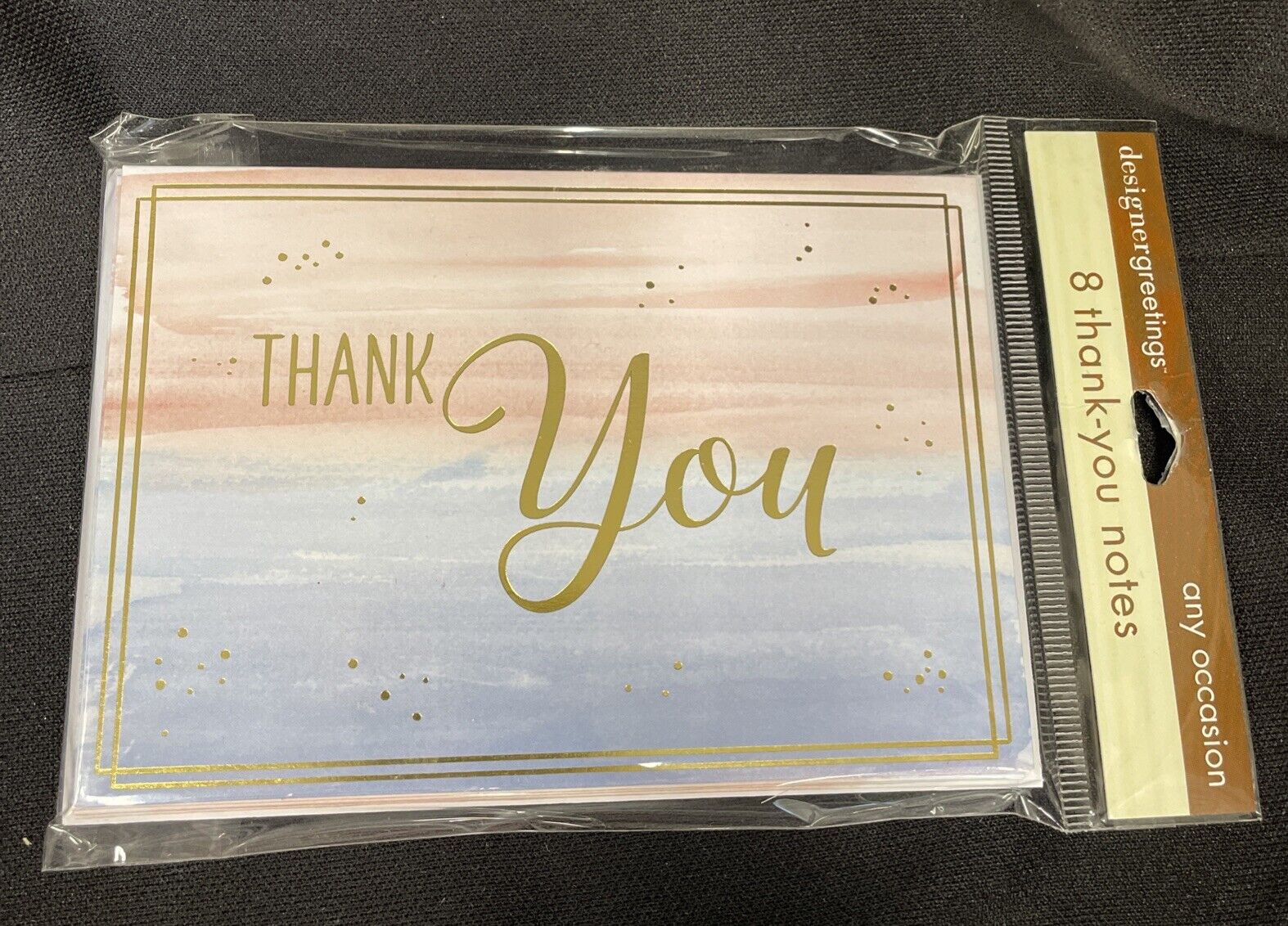 The product is a set of 8 elegant thank you notes suitable for any occasion. These notecards are designed by Designer Greetings and are perfect for expressing gratitude in a stylish and sophisticated manner. Ideal for sending heartfelt thank you messages to friends, family, colleagues, or anyone deserving of appreciation.