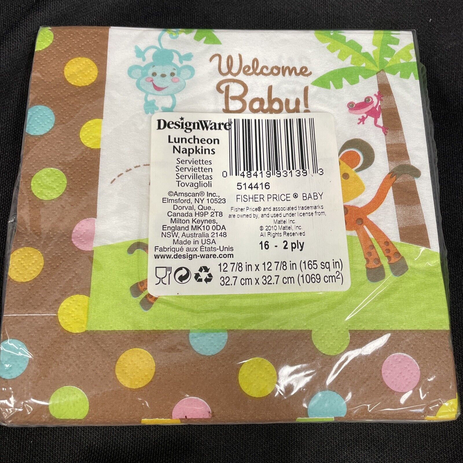 Celebrate the arrival of your little one with these adorable FISHER PRICE BABY themed paper lunch napkins. Perfect for a baby shower or any occasion to welcome a new addition to the family. The napkins feature a cute animal print pattern and come in a multi-color design, making them a great addition to your party supplies.