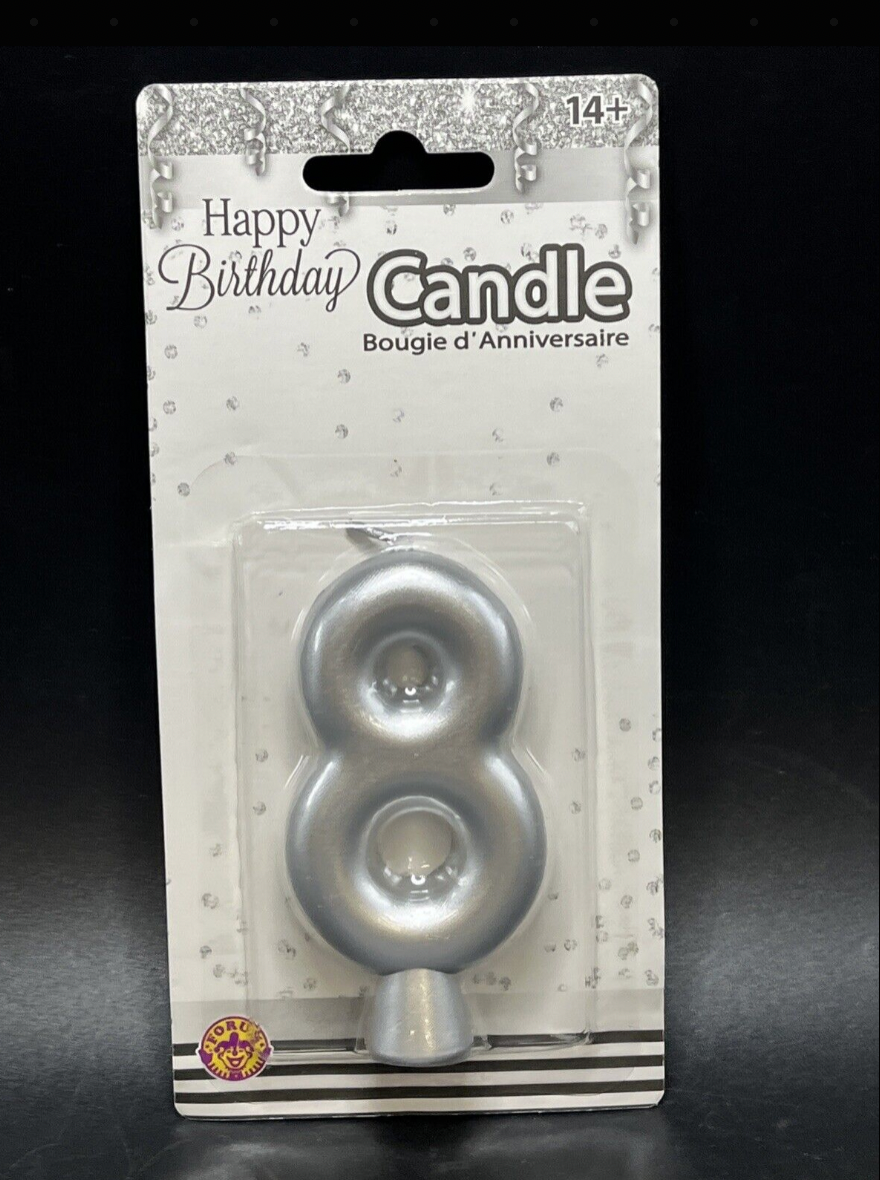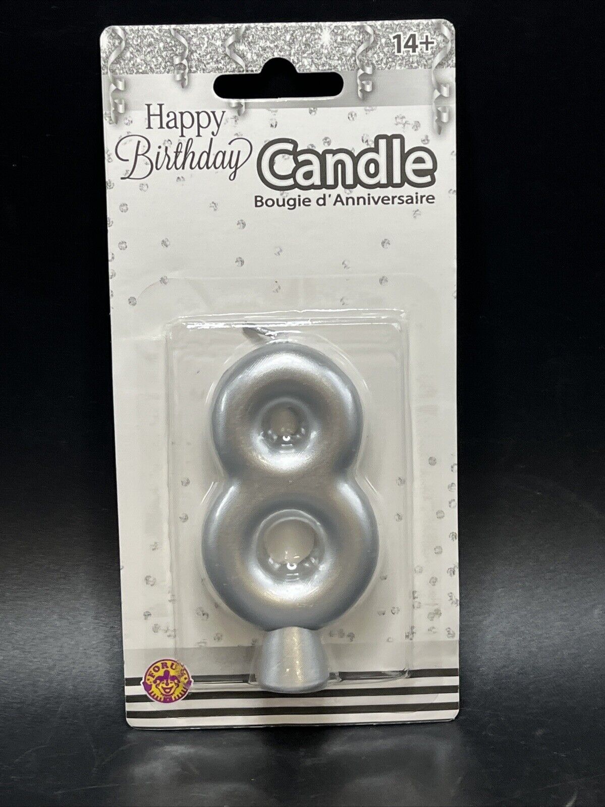 Forum Metallic Silver Numeral 8 Candle Cake Decoration (3 Inches Tall)