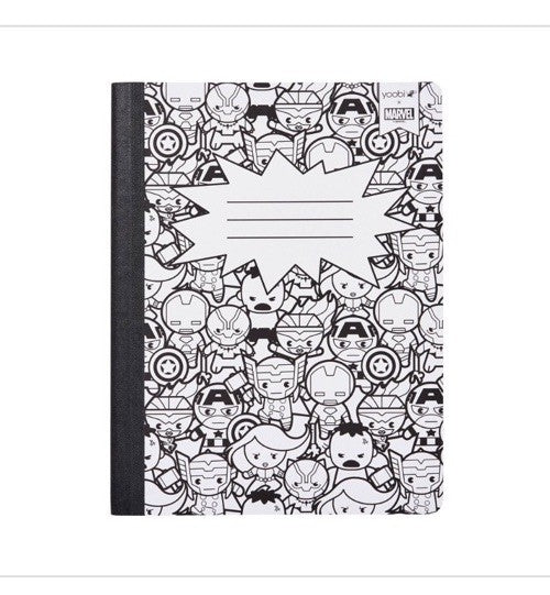 Let the Avengers inspire your creativity from the front of this composition book. The faces of Thor, Hulk, Captain America, Black Widow, and more get a kawaii makeover on this college ruled composition book. With 100 pages, there’s plenty of room for your pen or pencil to soar.