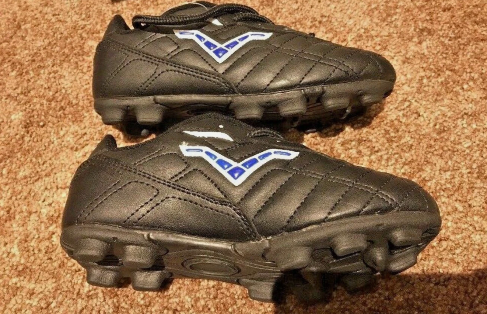 The Allegro Kids Cleats in Black/Blue/White Size 5 are designed specifically for young soccer players. Made with durable materials and a comfortable design, these cleats offer excellent support and stability on the soccer field. The striking color combination of black, blue, and white adds a stylish touch to any young athlete's uniform. With the Allegro brand known for quality sports gear, these cleats are sure to be a hit among youth soccer players looking to up their game.