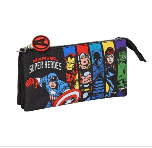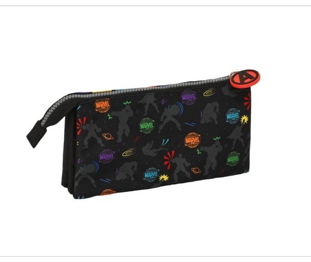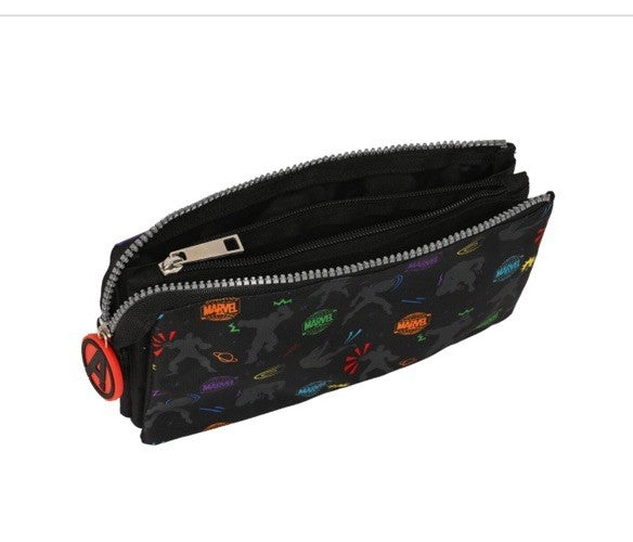 2 Zipper 3 Compartment Multipurpose Pencil case Avengers Black (22 x 12 x 3 cm)