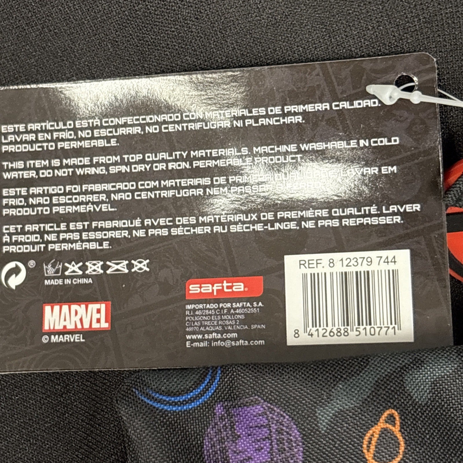 The product is a Safta brand pencil case featuring a design with Avengers Black superheroes. It has two zippers and three compartments, providing ample space for organizing pencils, pens, markers, and other small items. With dimensions of 22 x 12 x 3 cm, this versatile pencil case is perfect for school, office, or on-the-go use, offering both style and functionality for fans of superheroes.